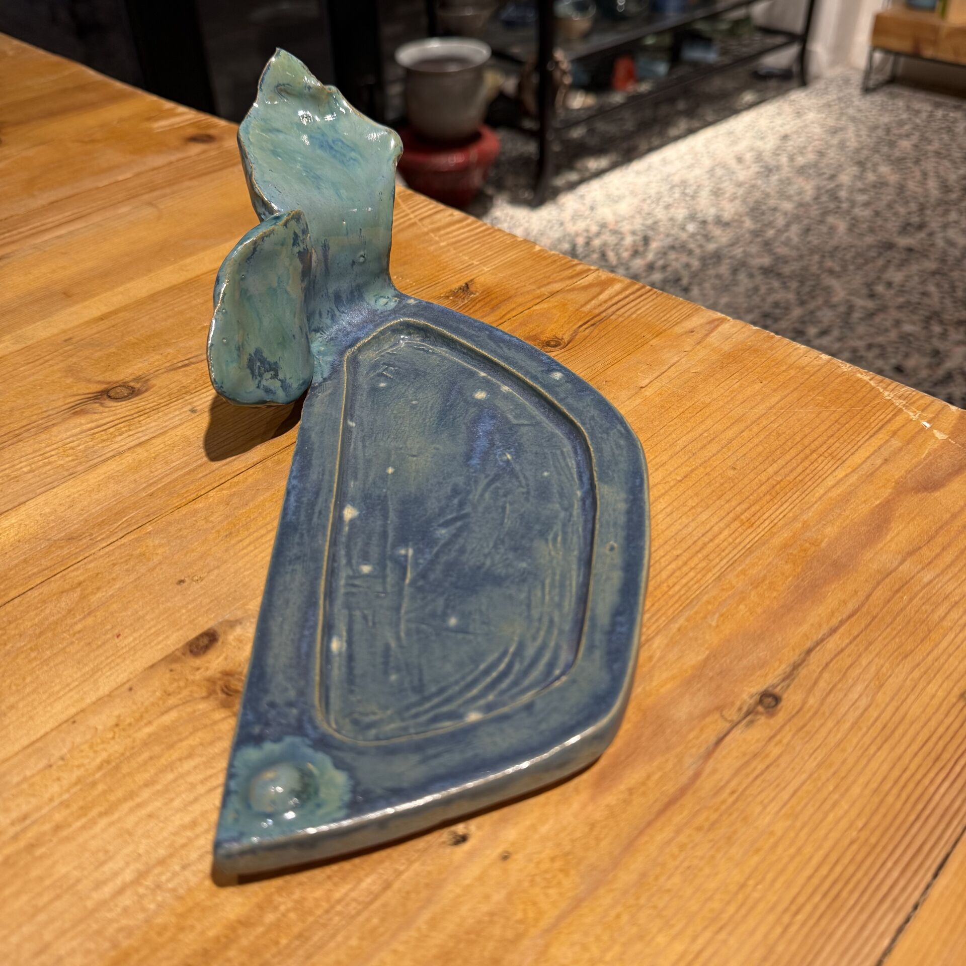 10,5*28 cm çapında mavi tonda seramik sunum tabağı.