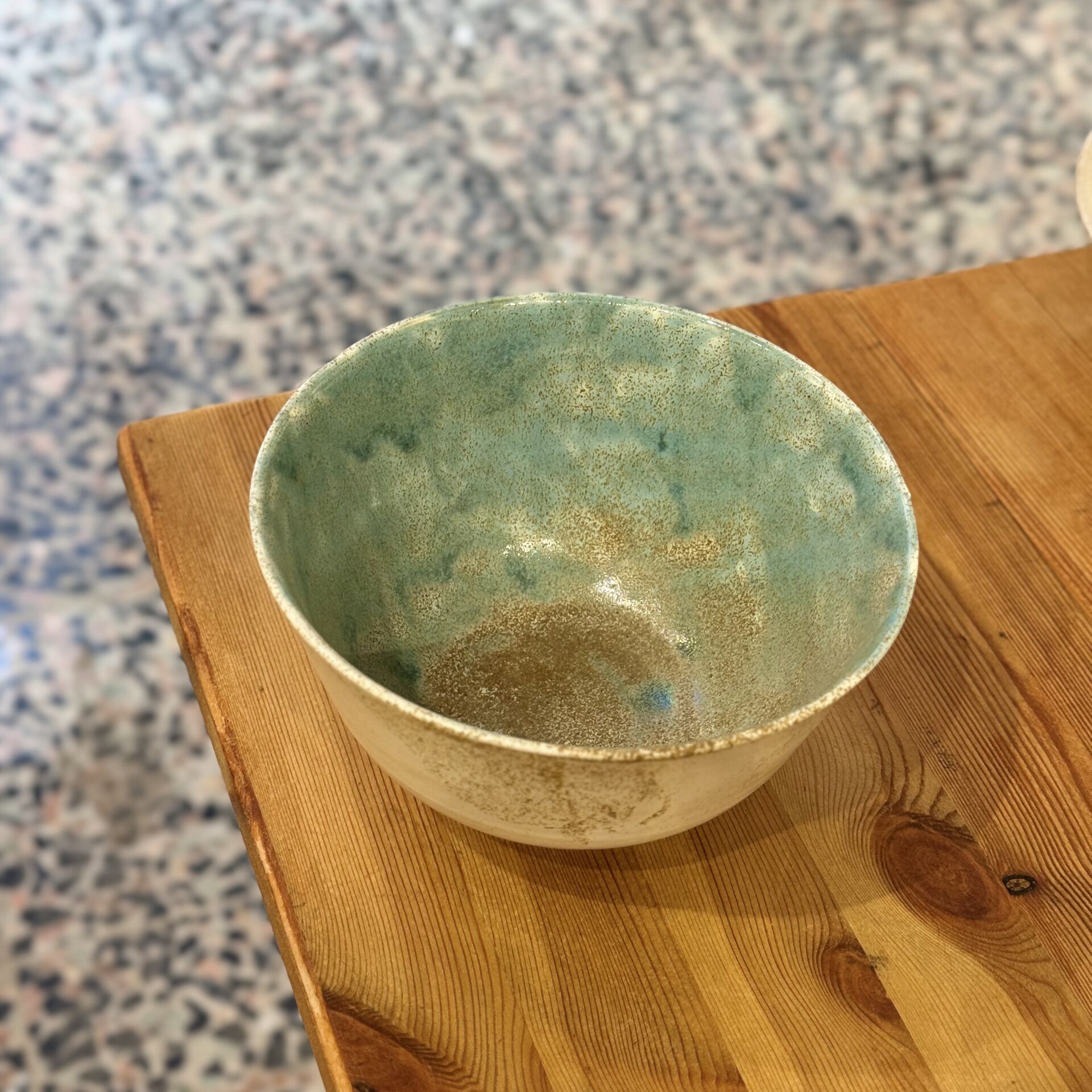 16,5 cm ağız genişliğine sahip 9,5 cm yüksekliğinde içi mavi tonlarında dışı beyaz renklerinde seramik kase.
