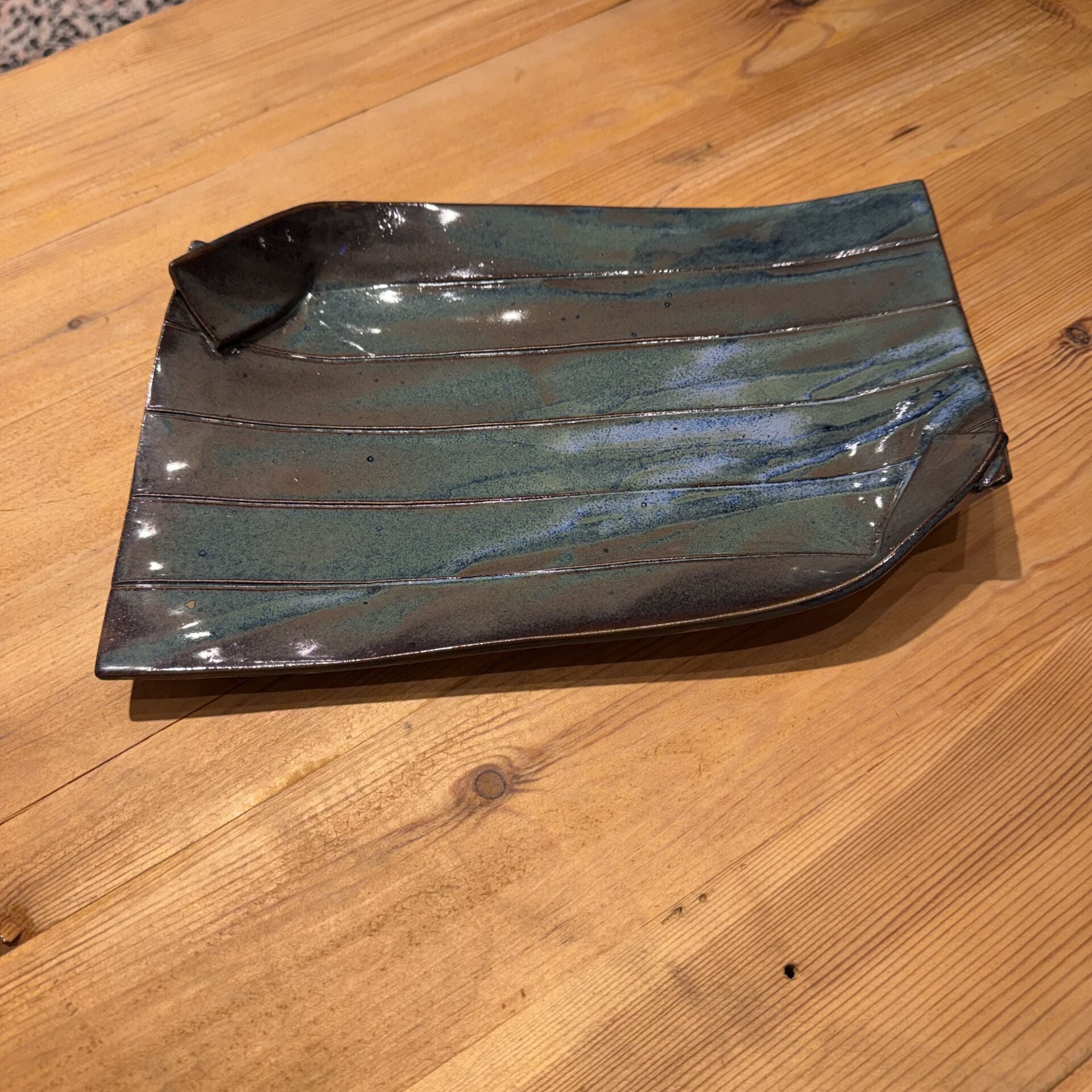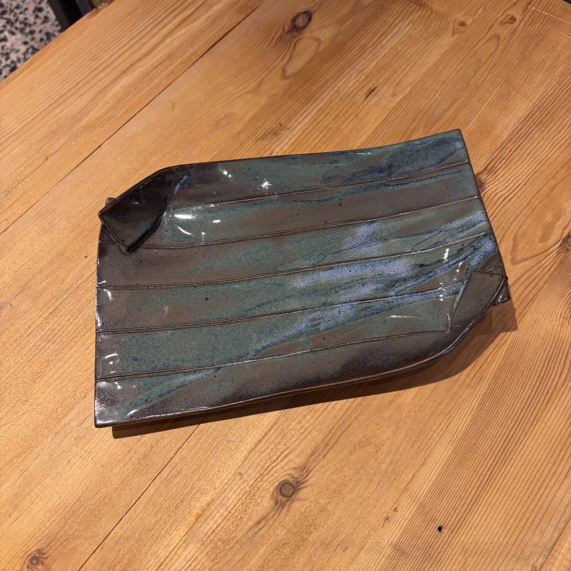 29*19,5 cm çapında, asimetrik formlu seramik sunum tabağı.