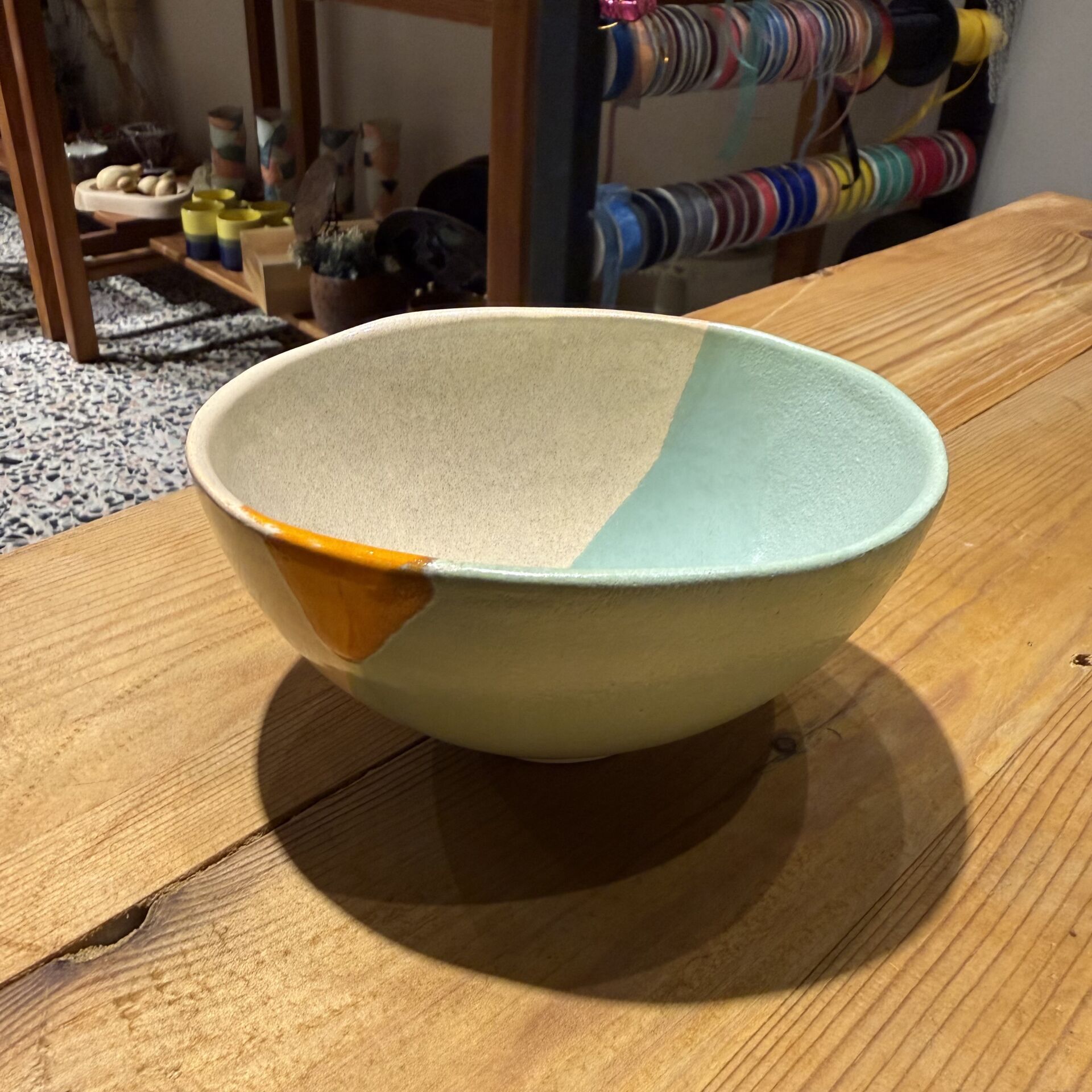 6 cm derinliğinde 13x11 cm ebatlarında sermik kase.