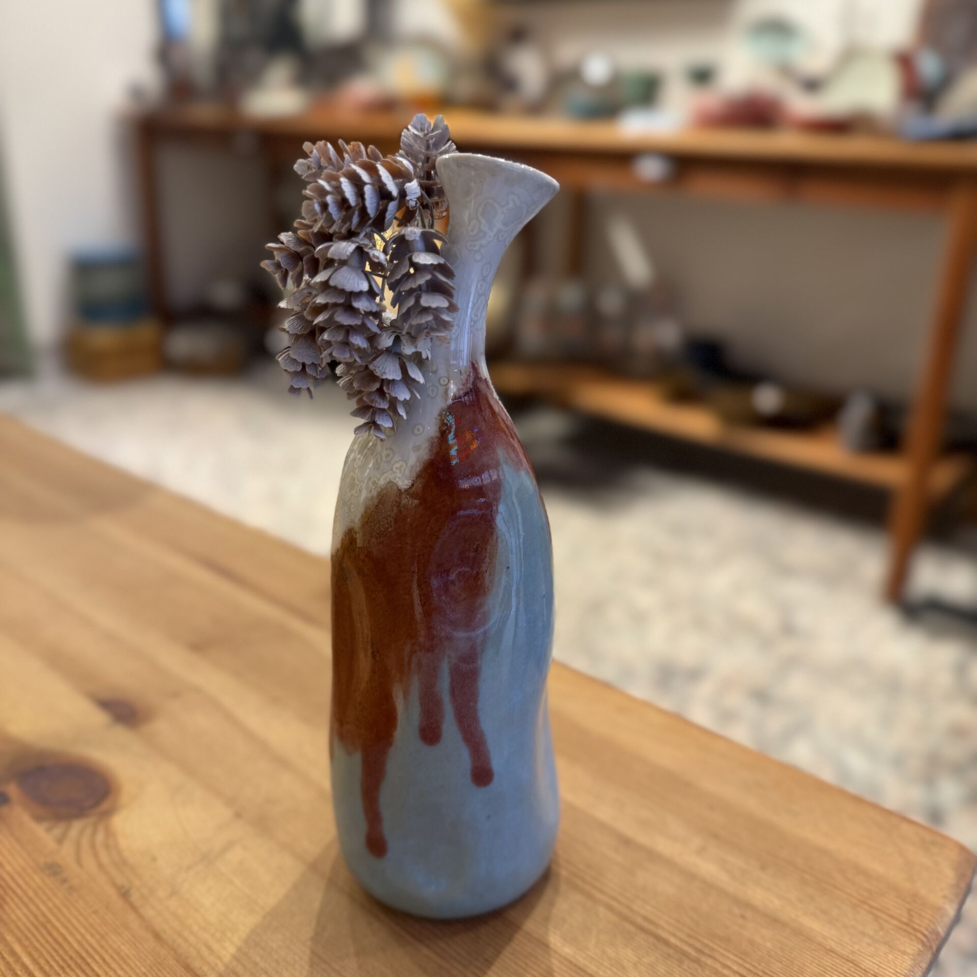 19 cm yüksekliğinde, dekoratif seramik vazo. Çiçekler dahil değildir.