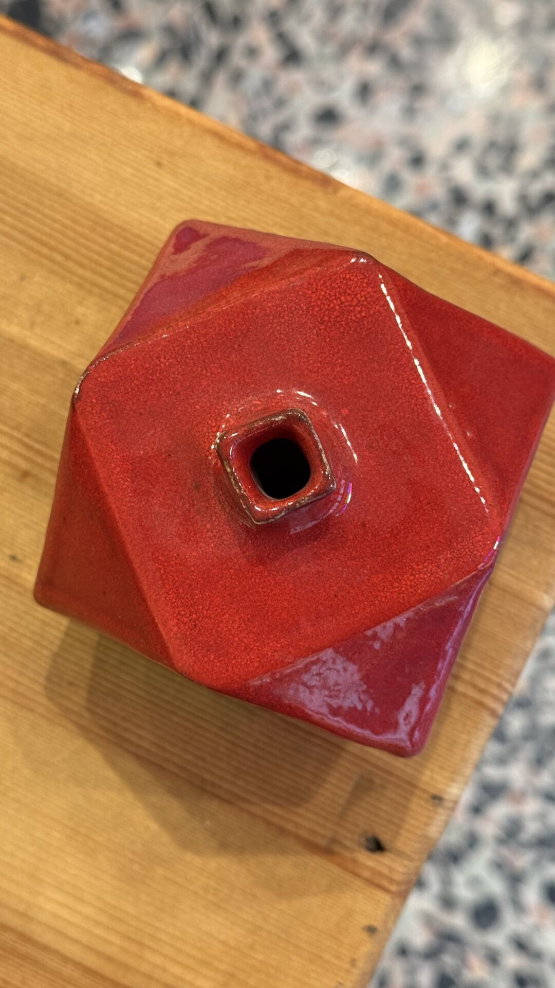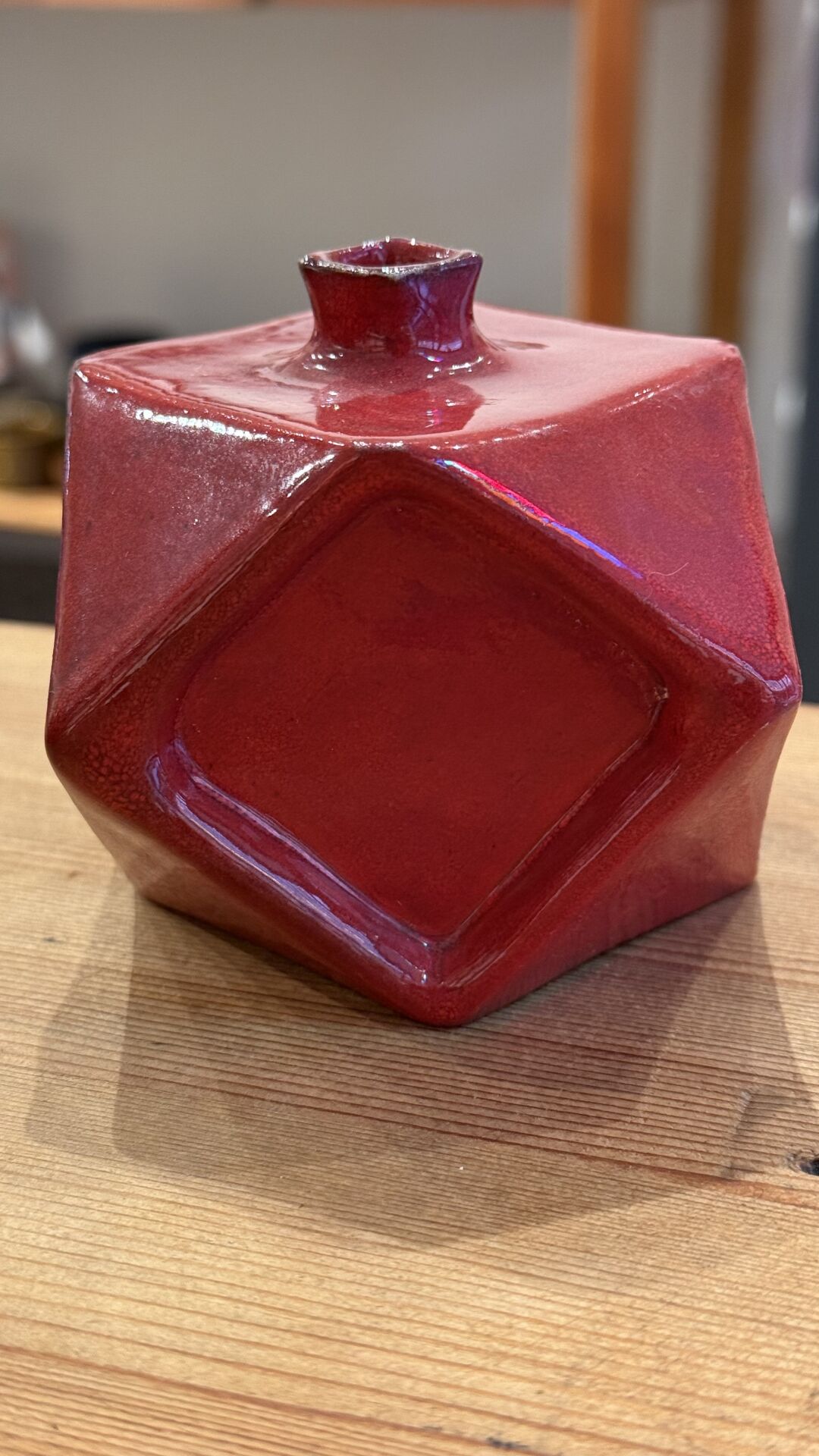 7 cm yüksekliğinde kırmızı nar şeklinde seramik obje.