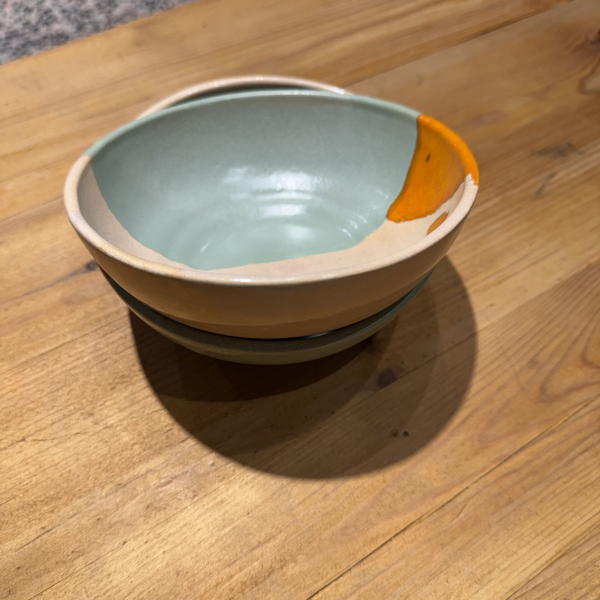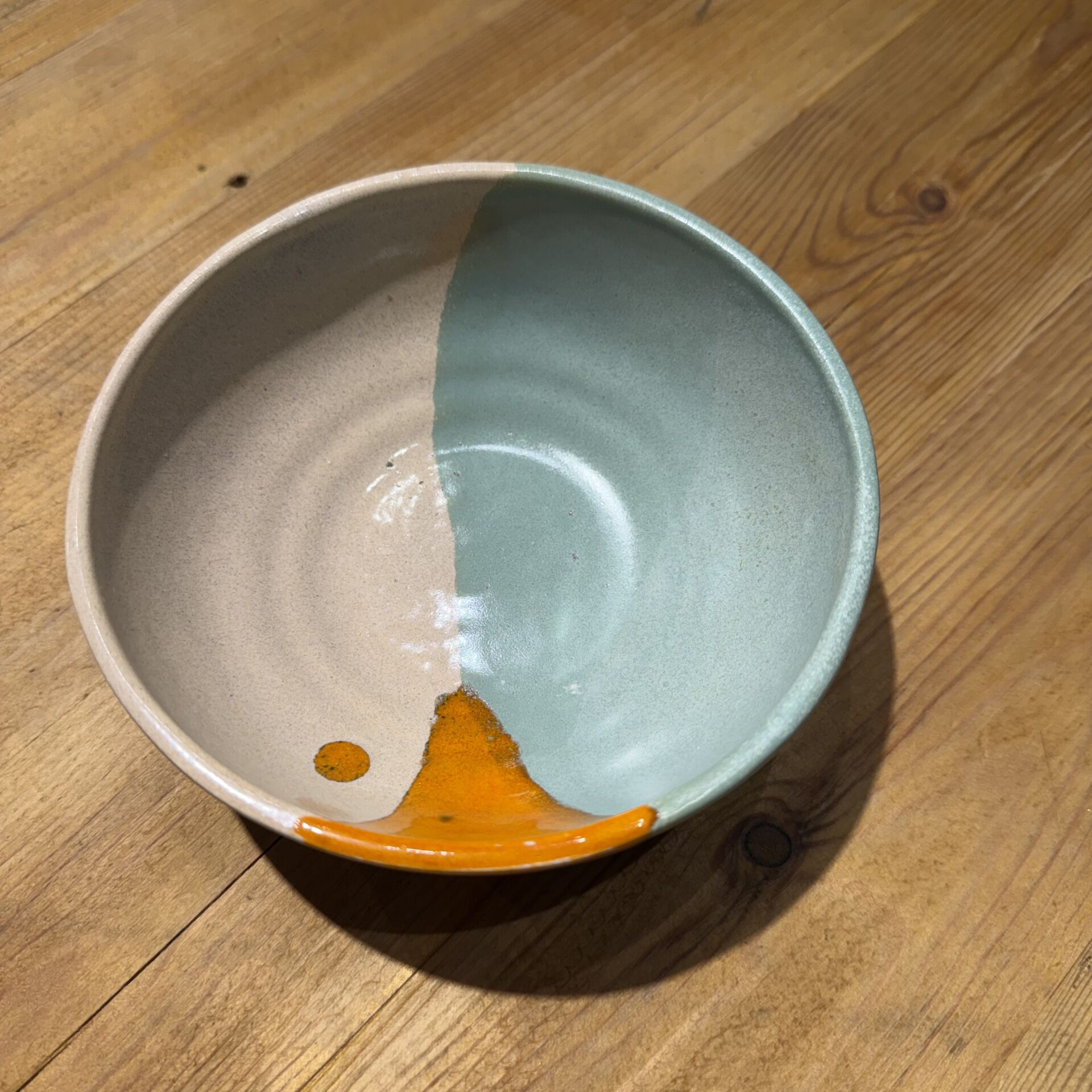 14 cm çapında çok renkli seramik kase.