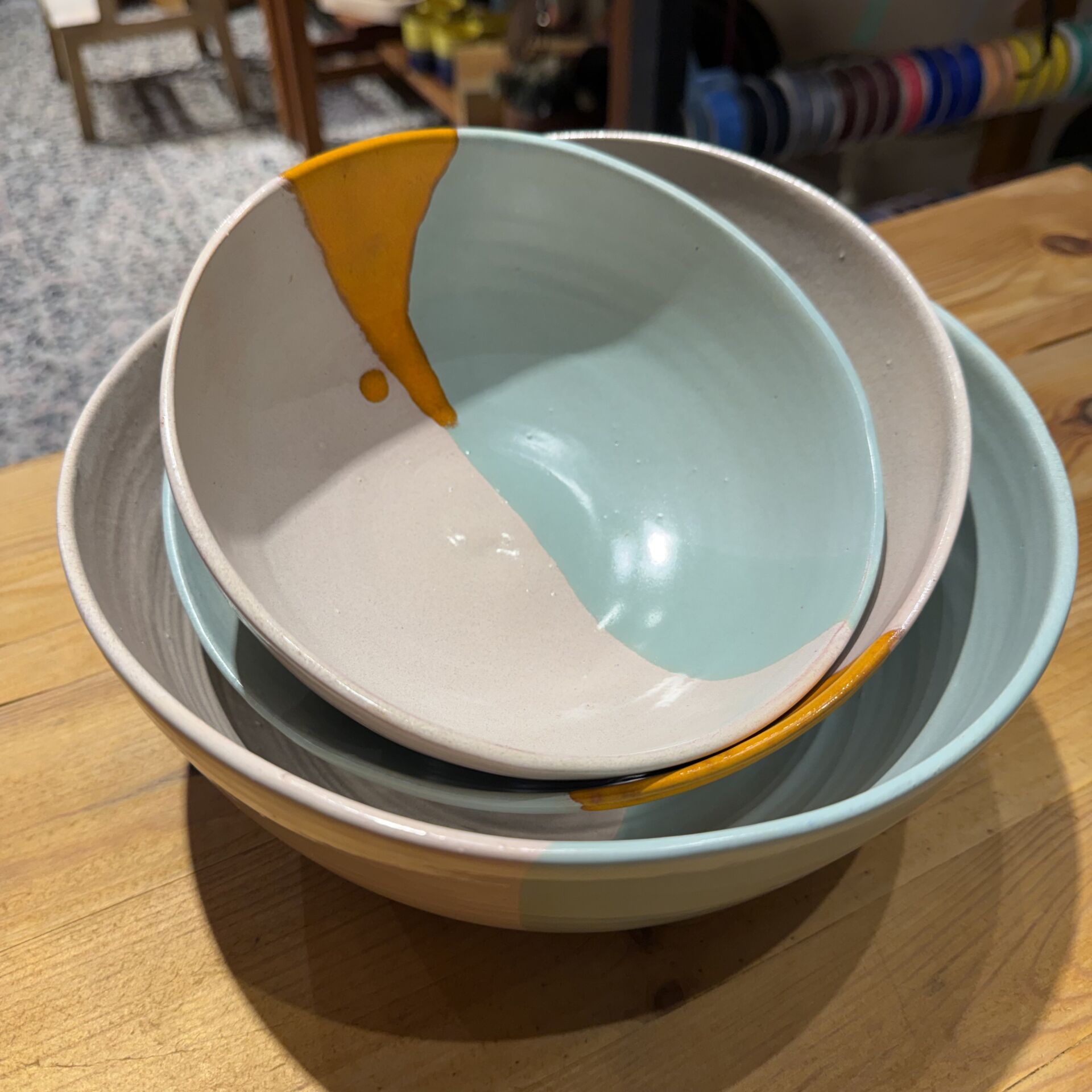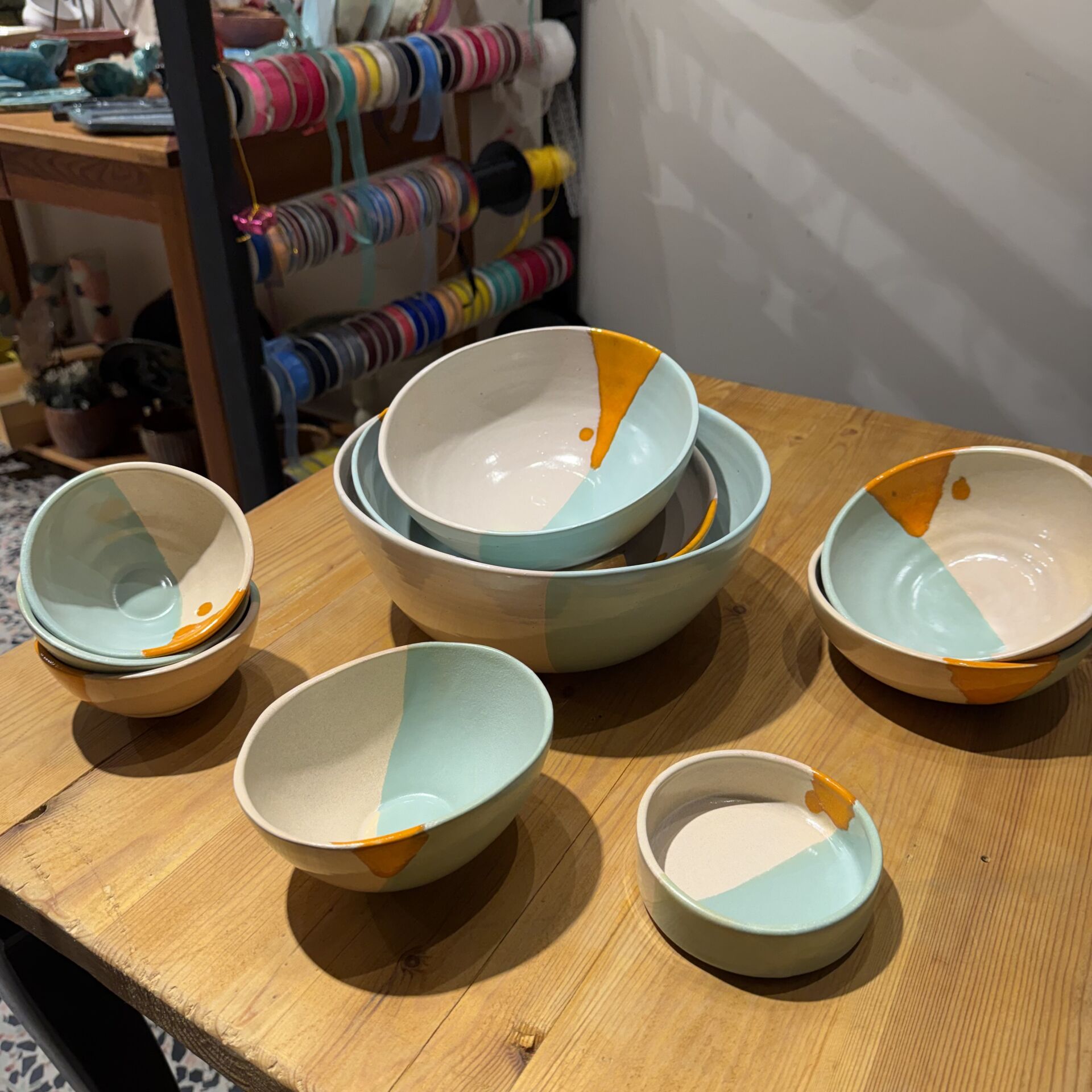 24 cm çapında çok renkli seramik kase.