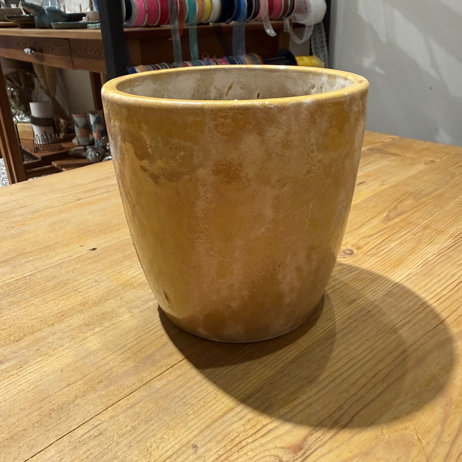 13*13 cm çapında, 12 cm derinliği olan seramik saksı.