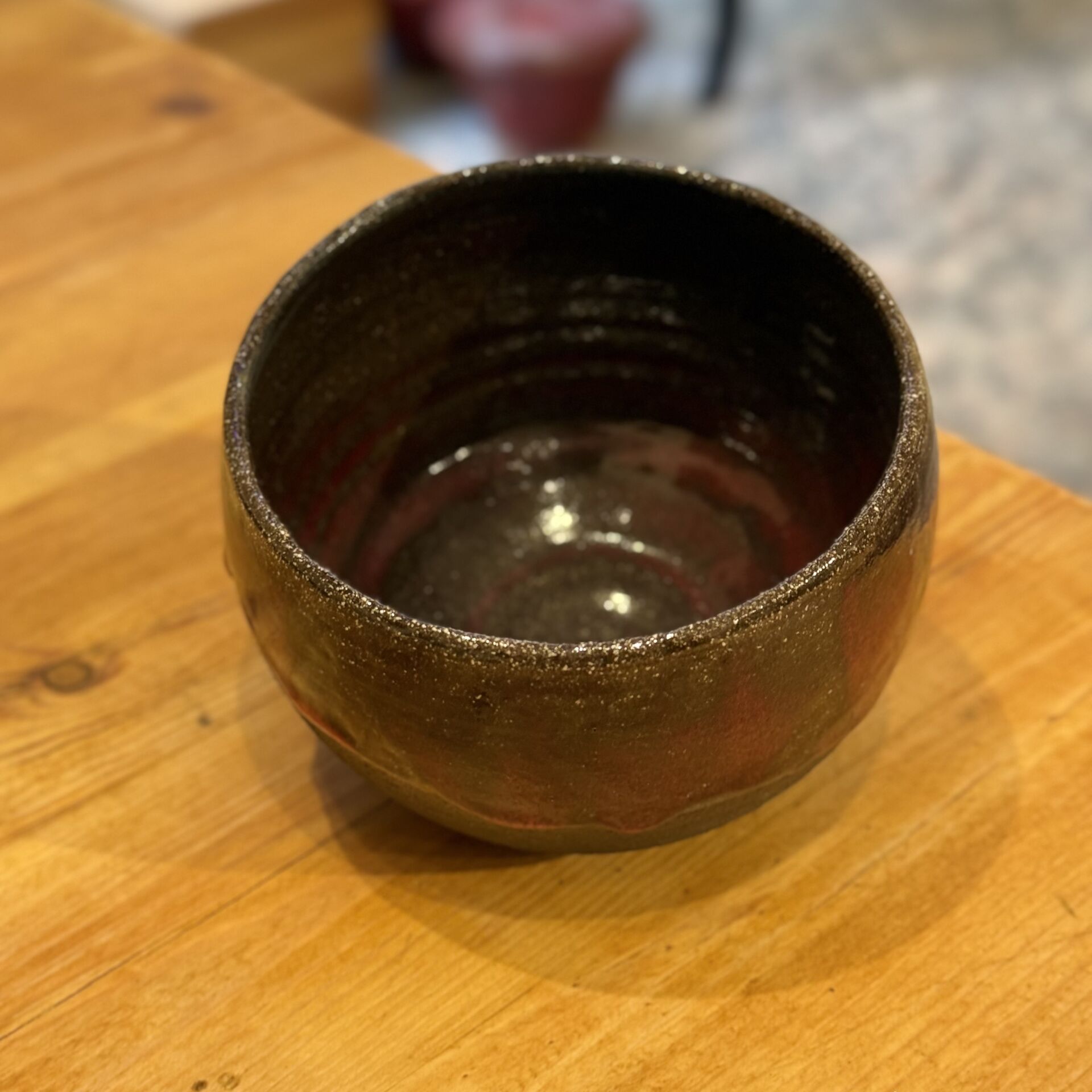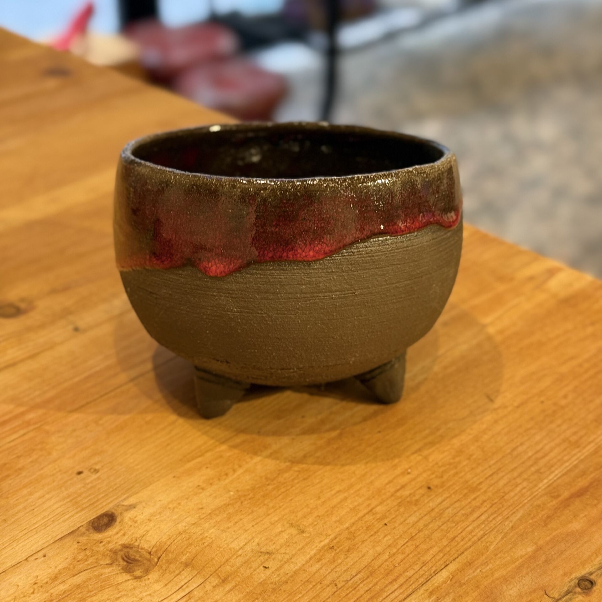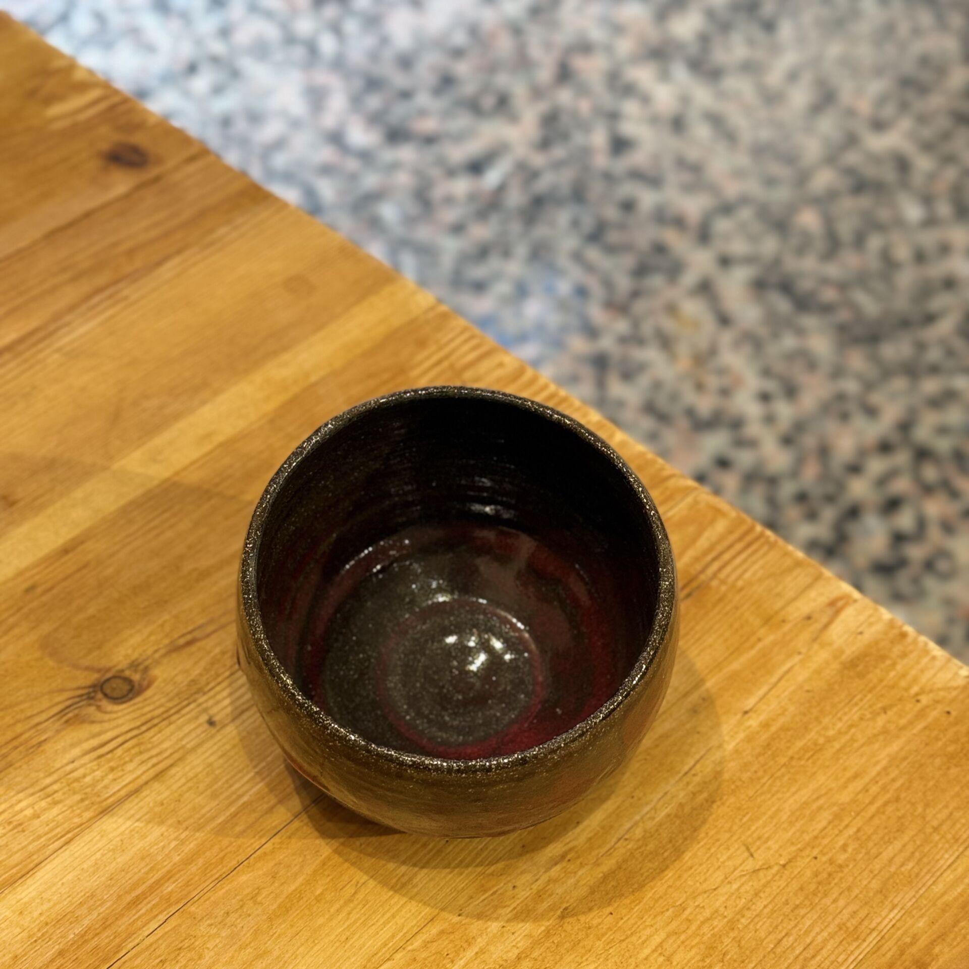 12 cm çapında 7,5 cm yüksekliğinde kırmızı antrasit renklerinde seramik vazo.