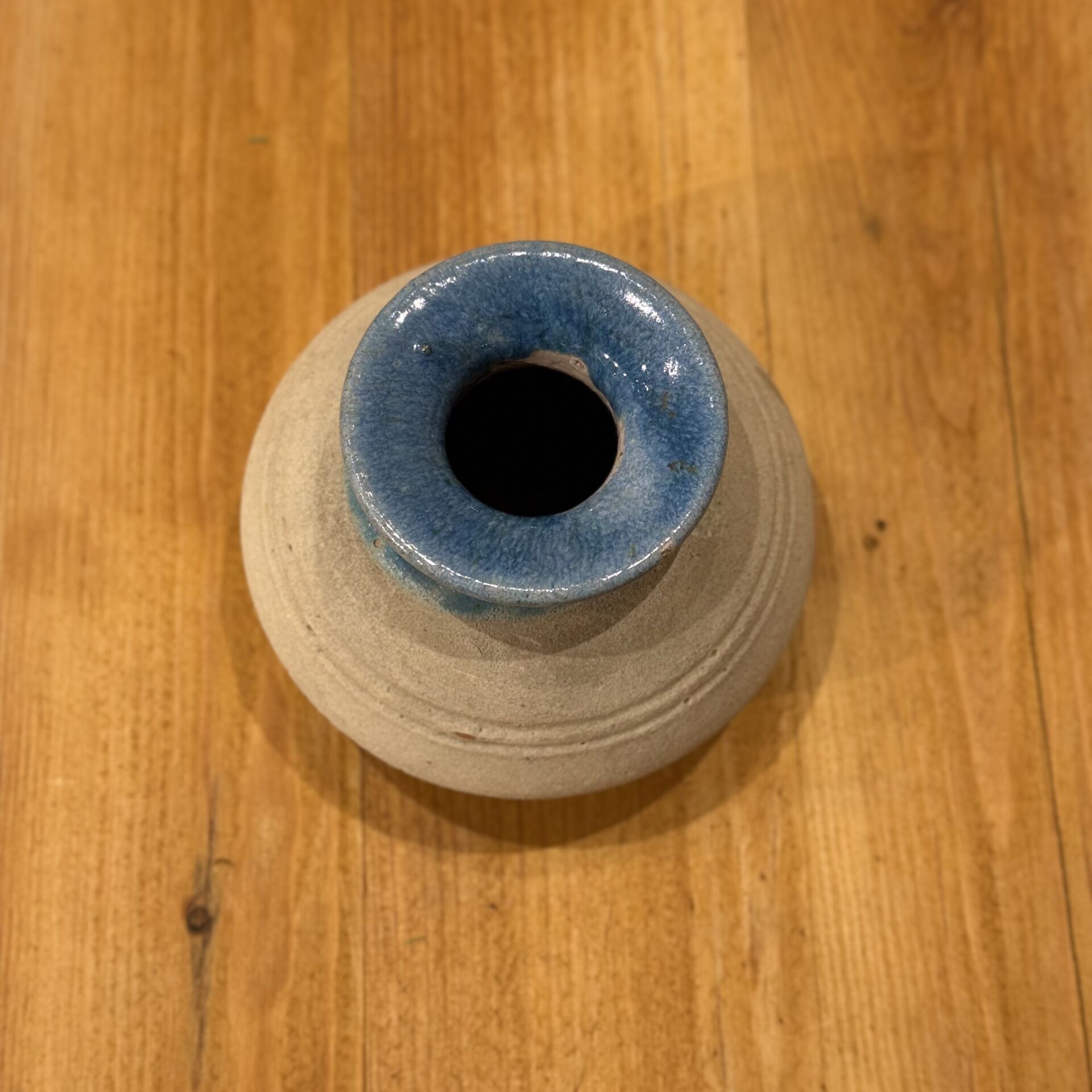6 cm çağında ağız genişliğine sahip, doğal dokulu mini seramik vazo.