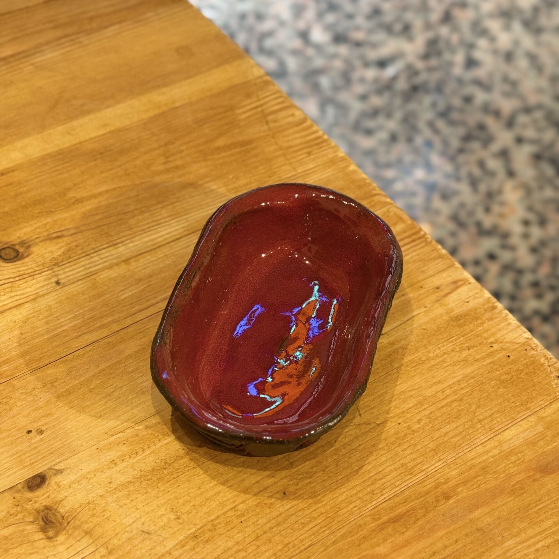 16x10 cm ebatlarında, sucuk tekniğiyle yapılmış çok amaçlı tabak.