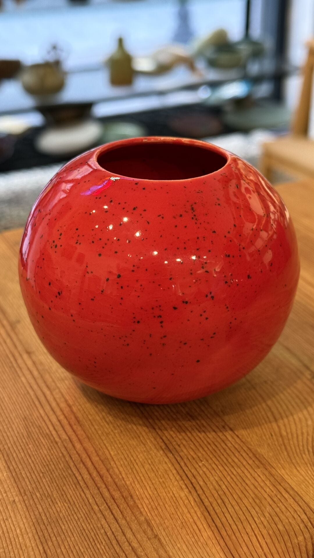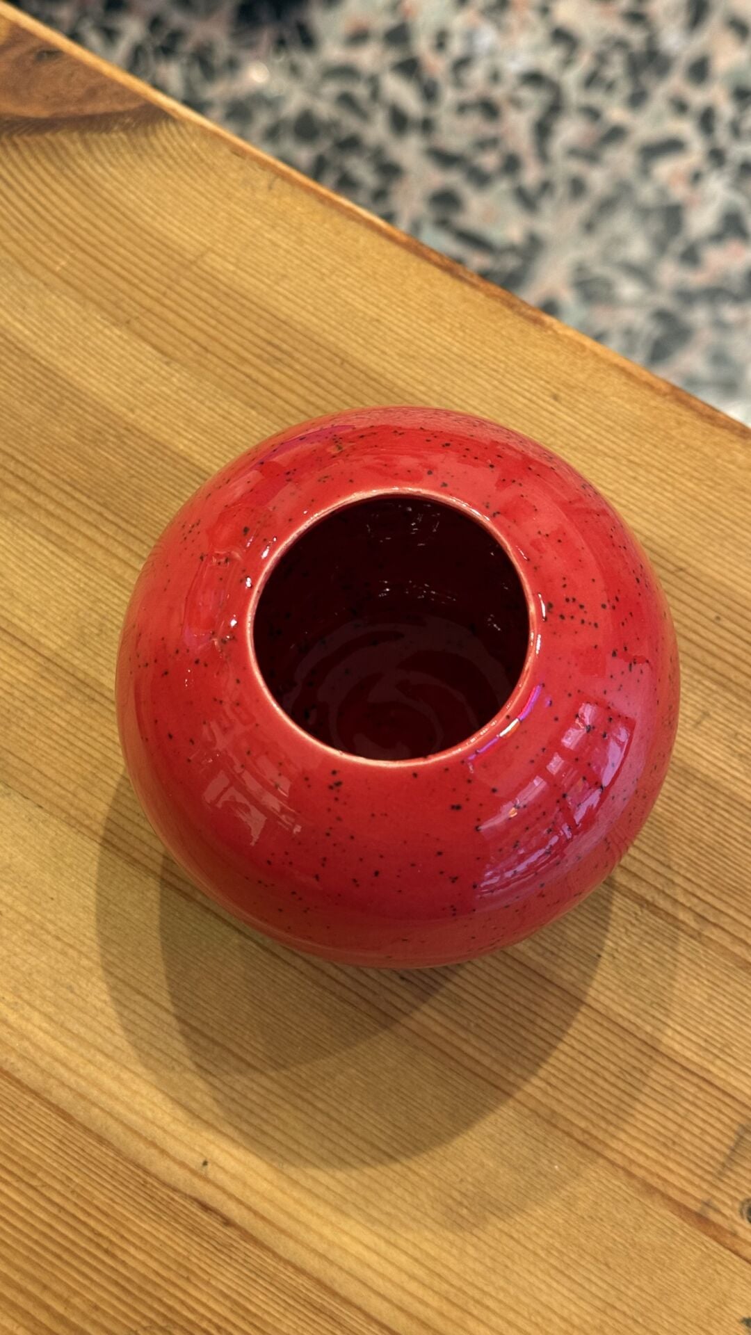 6 cm çapında 7,5 cm yüksekliğinde seramik vazo.