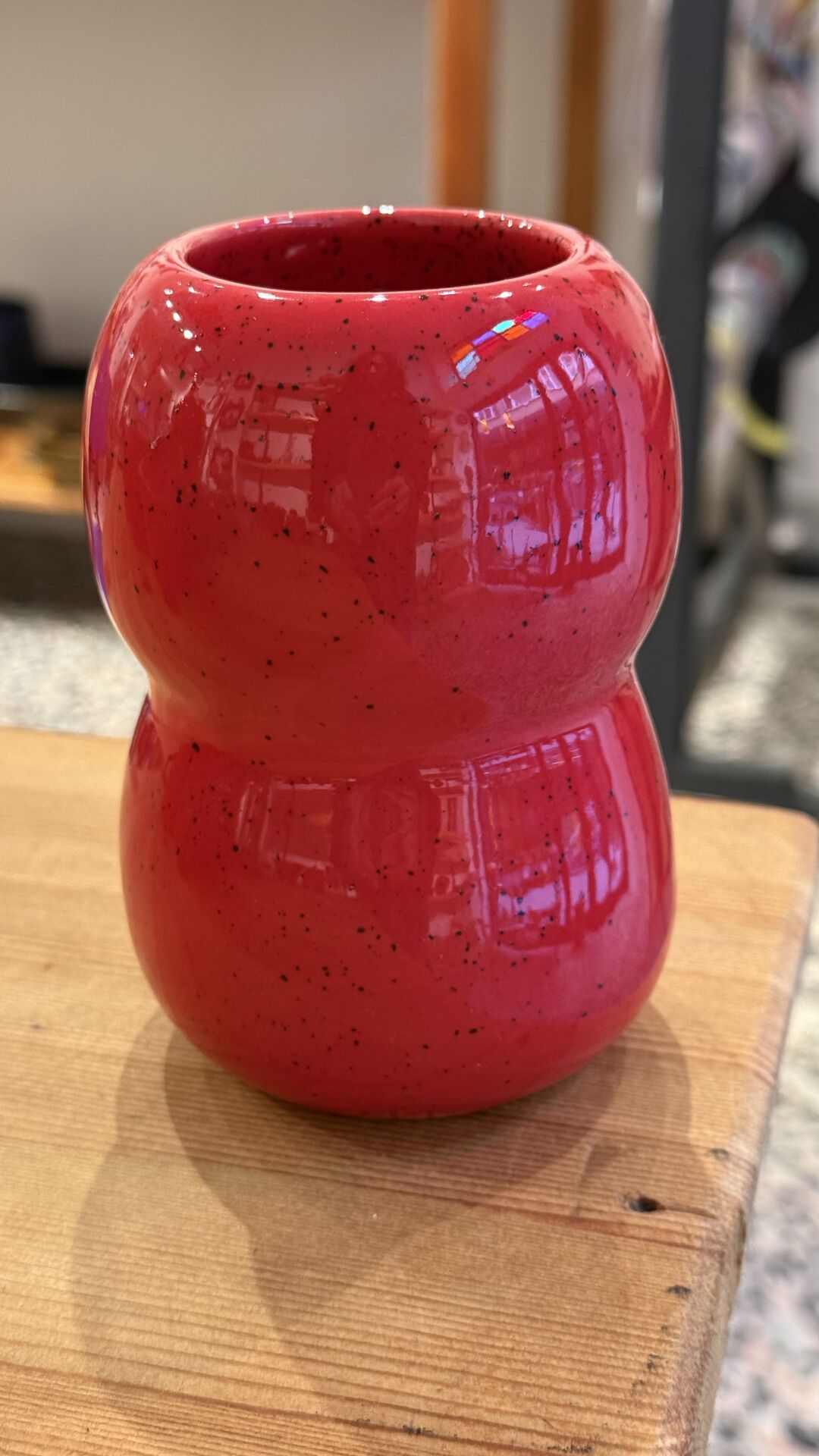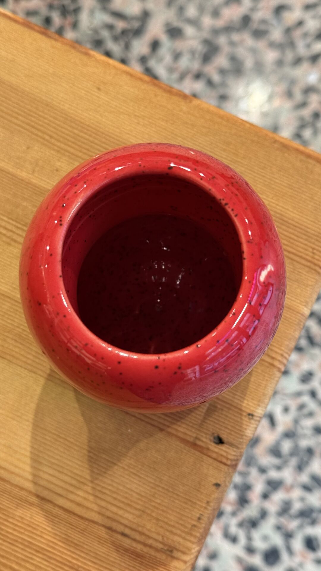 6 cm çapında 12,5 cm yüksekliğinde kırmızı seramik vazo.