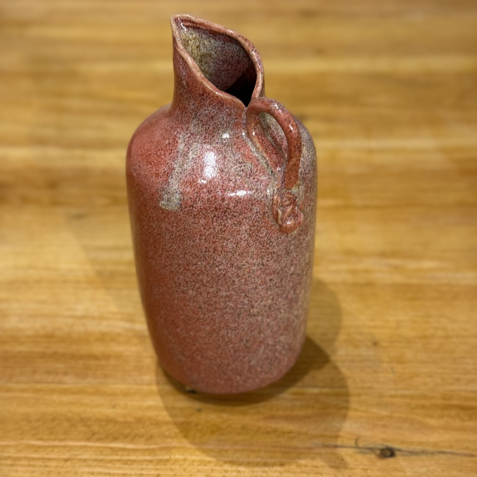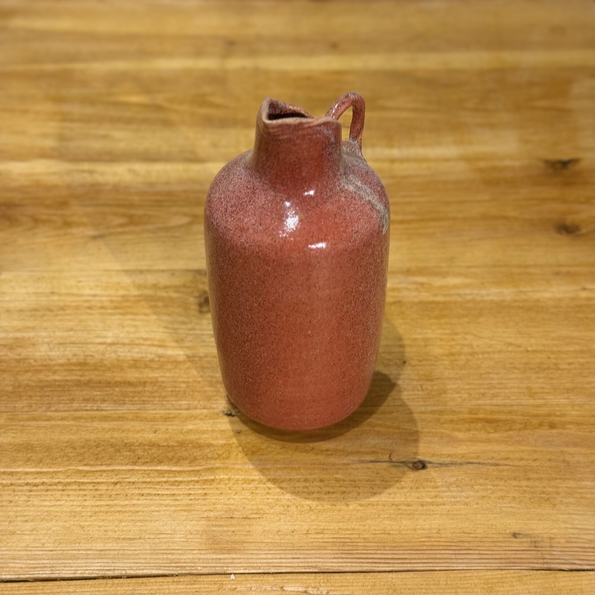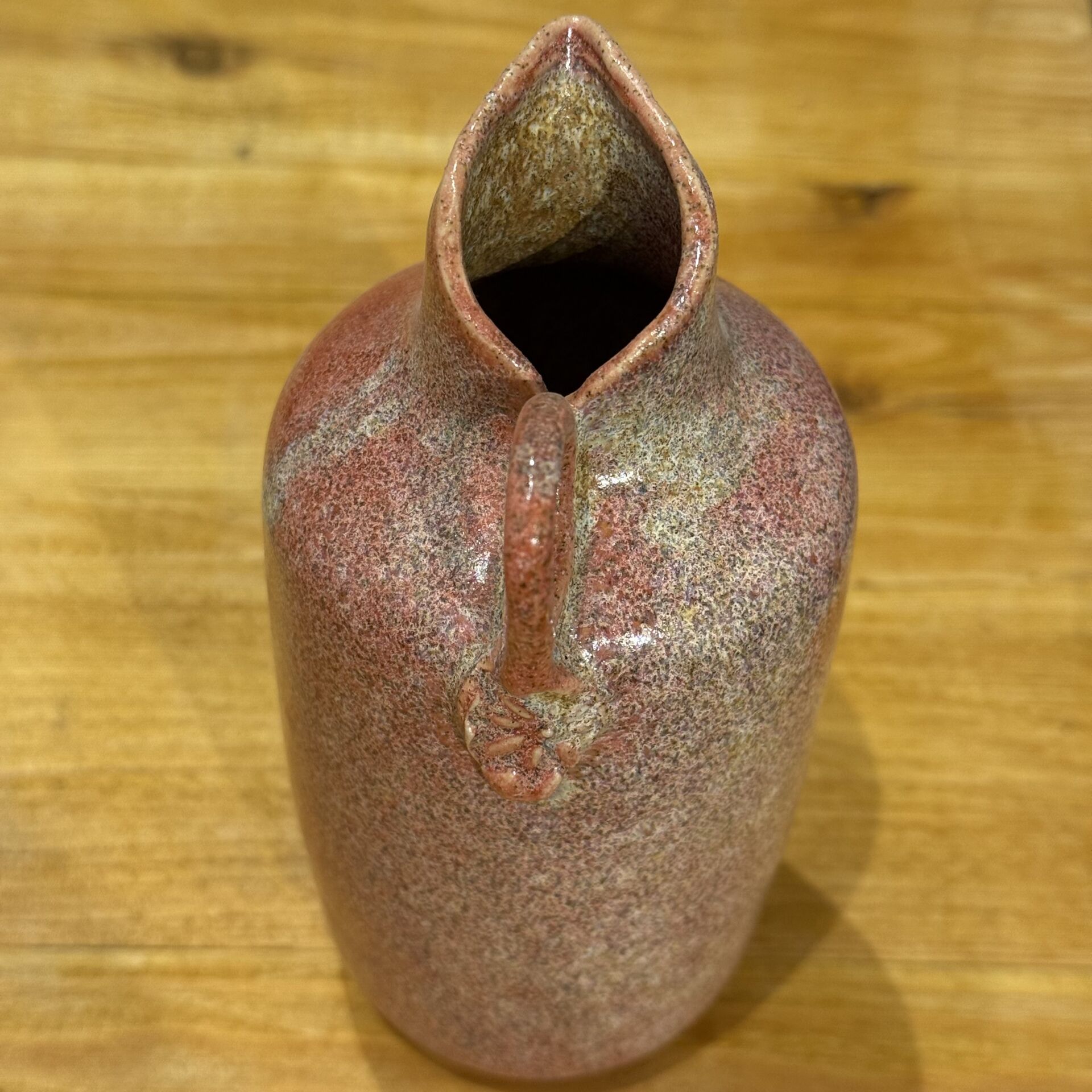 16 cm yüksekliğinde renk geçişli, kulplu, kulbunda çiçek baskı detaylı seramik vazo.