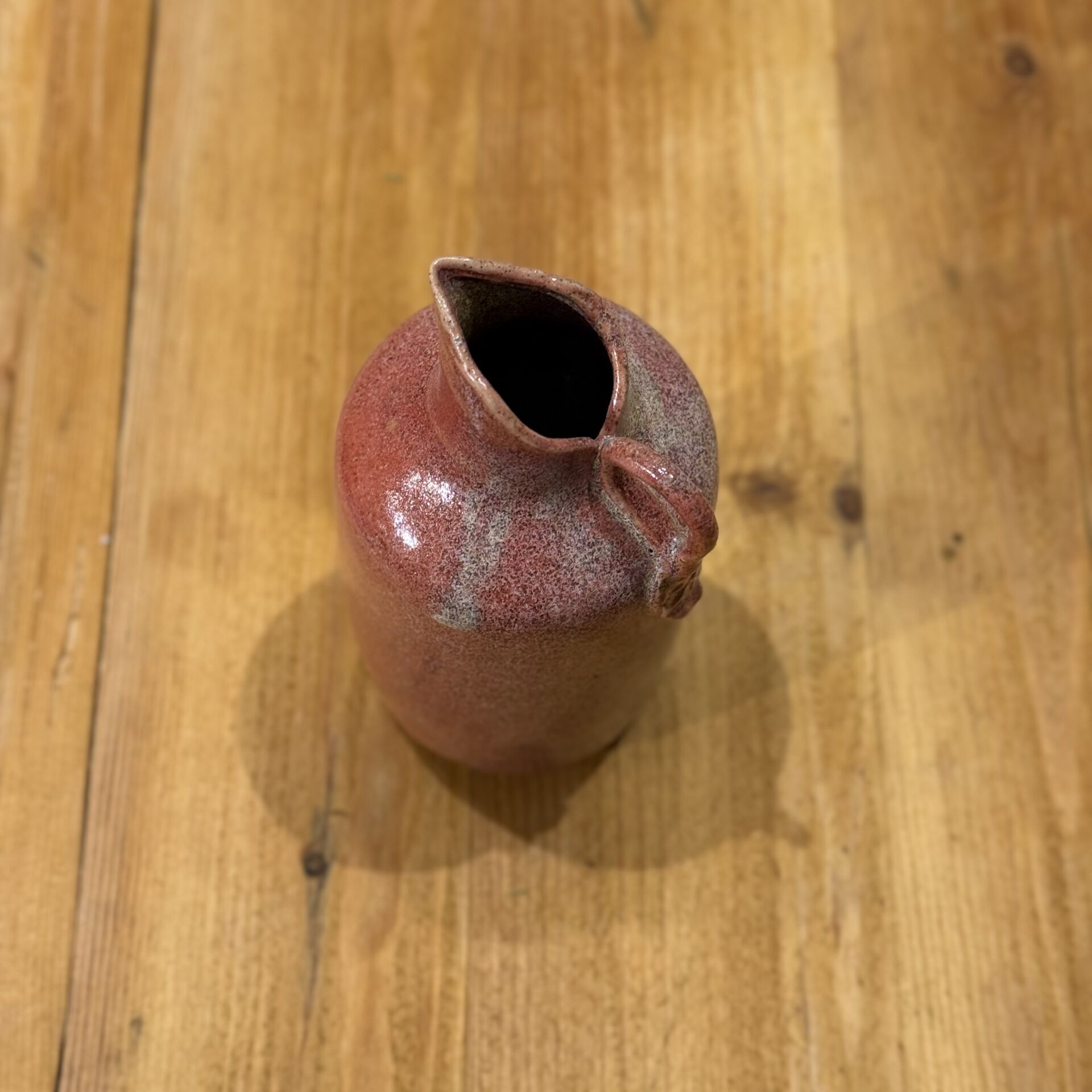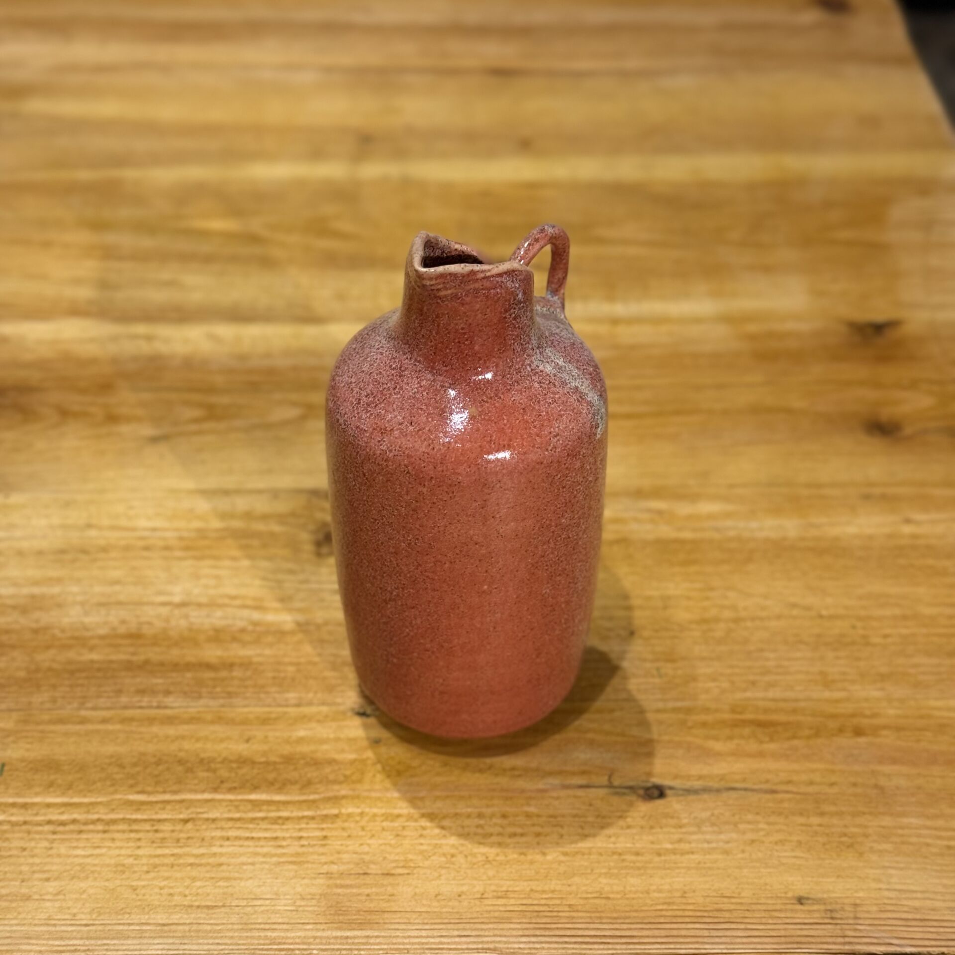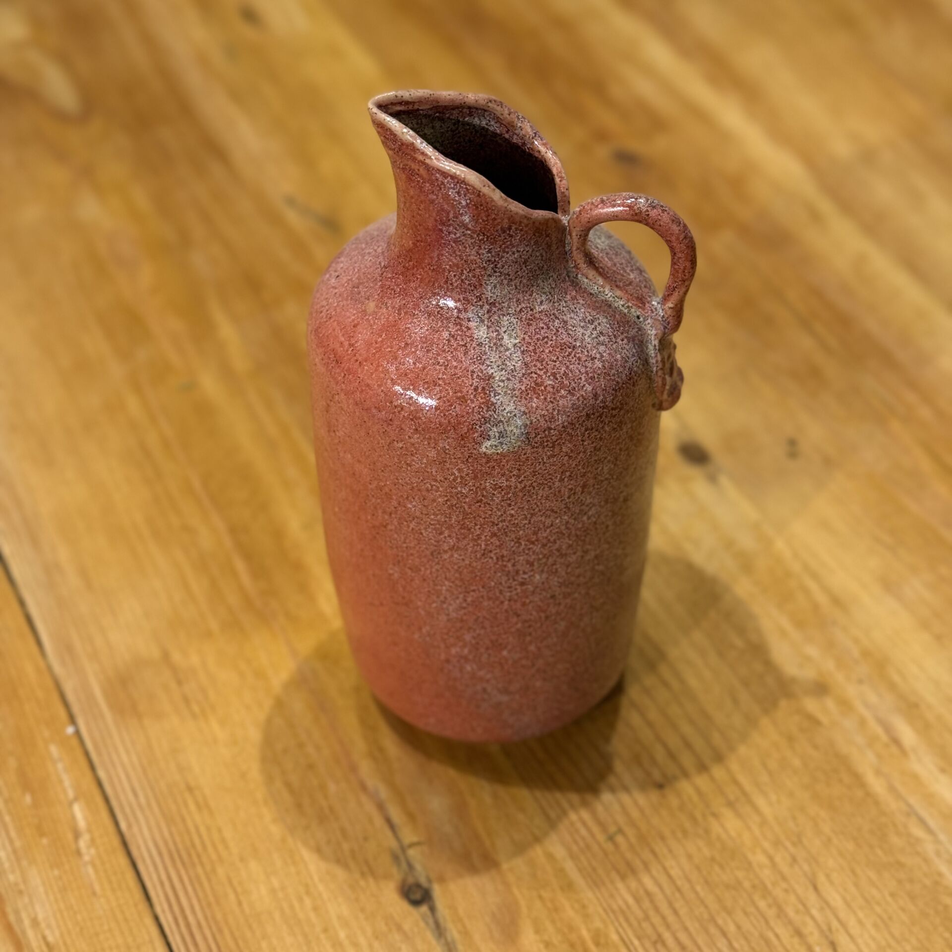 16 cm yüksekliğinde renk geçişli, kulplu, kulbunda çiçek baskı detaylı seramik vazo.