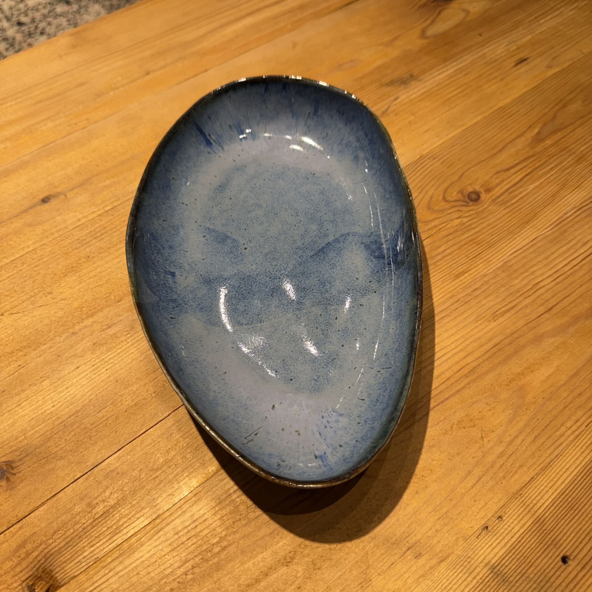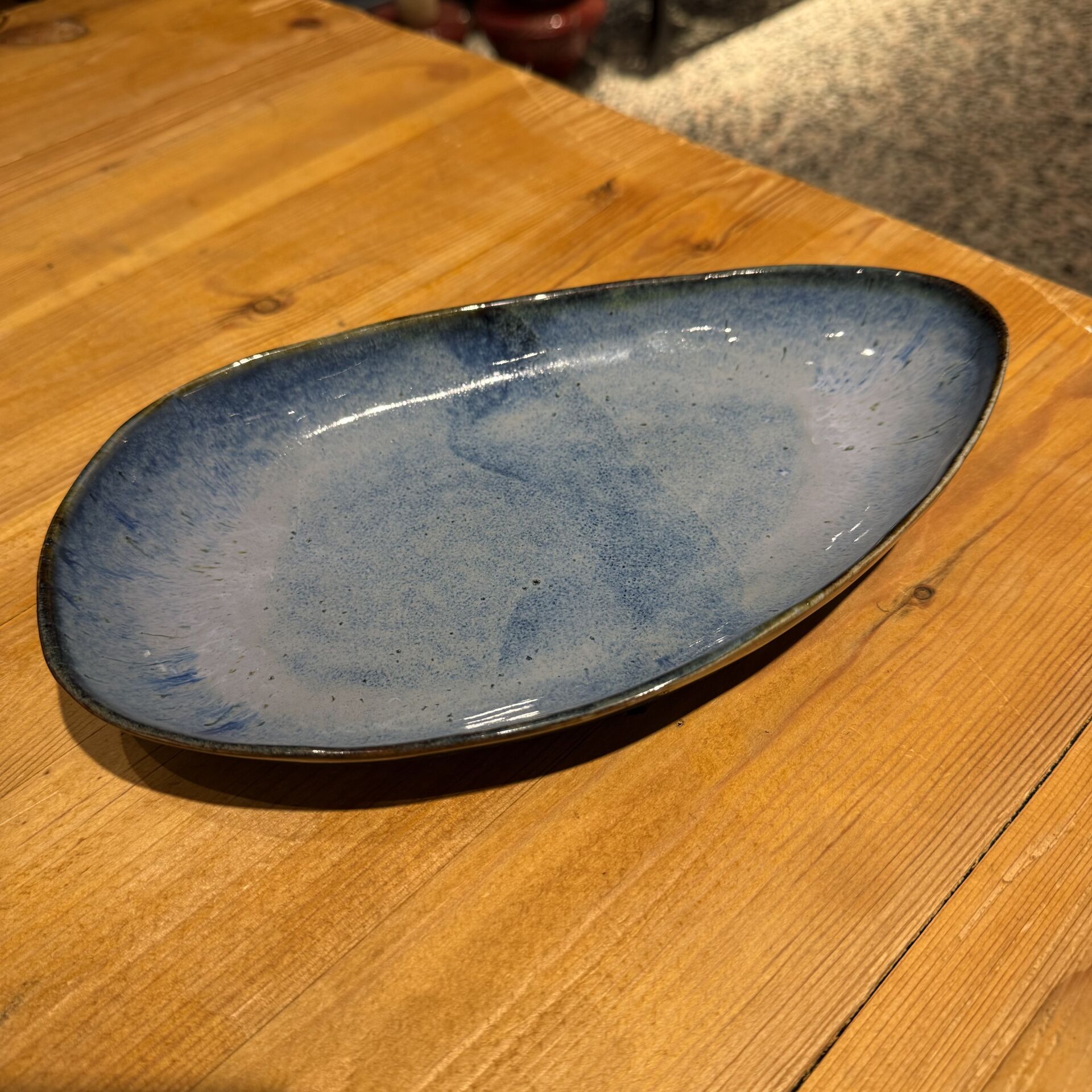 15*24 cm çapında mavi tonda çok amaçlı seramik sunum tabağı.