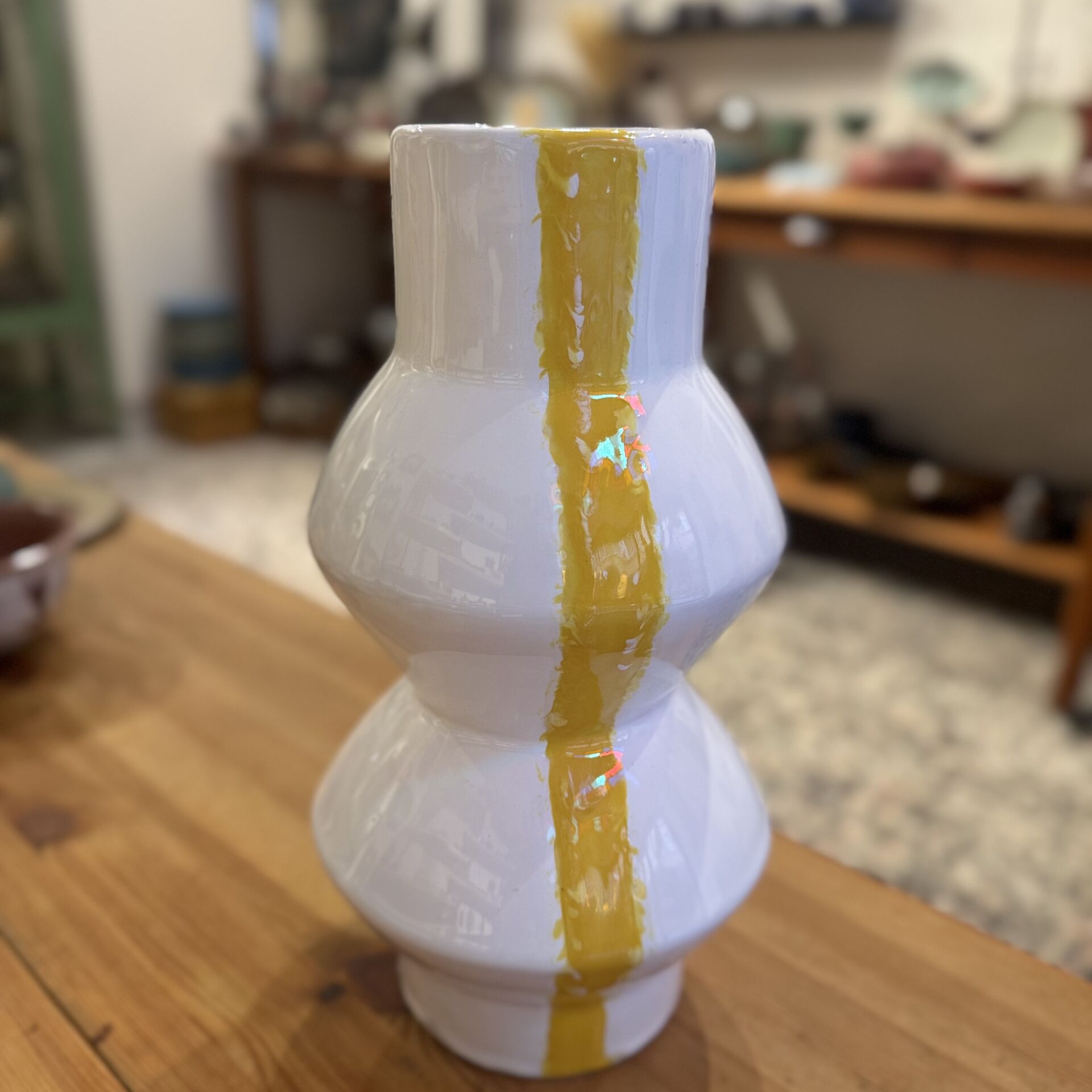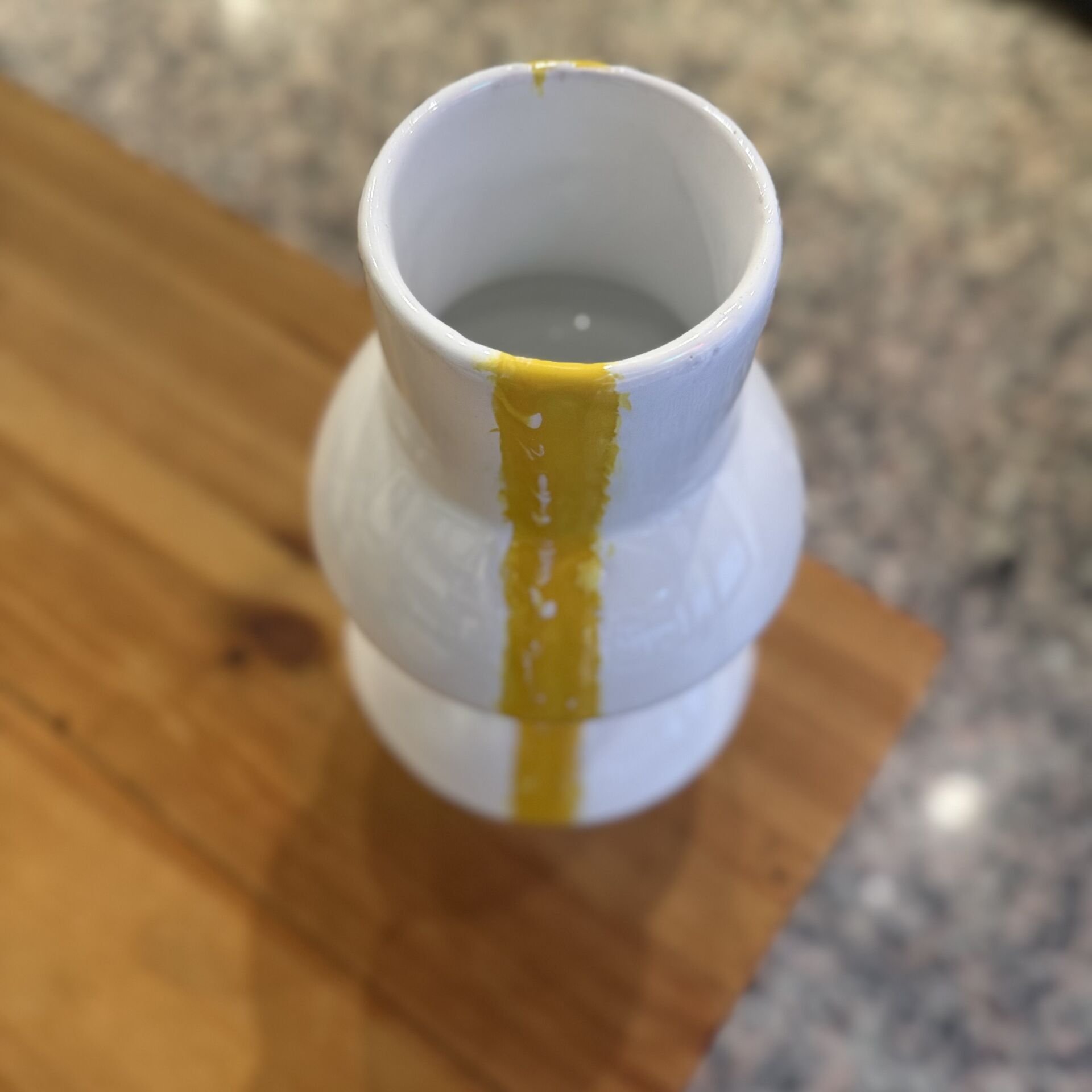 28 cm yüksekliğinde boğum detaylı seramik vazo.
