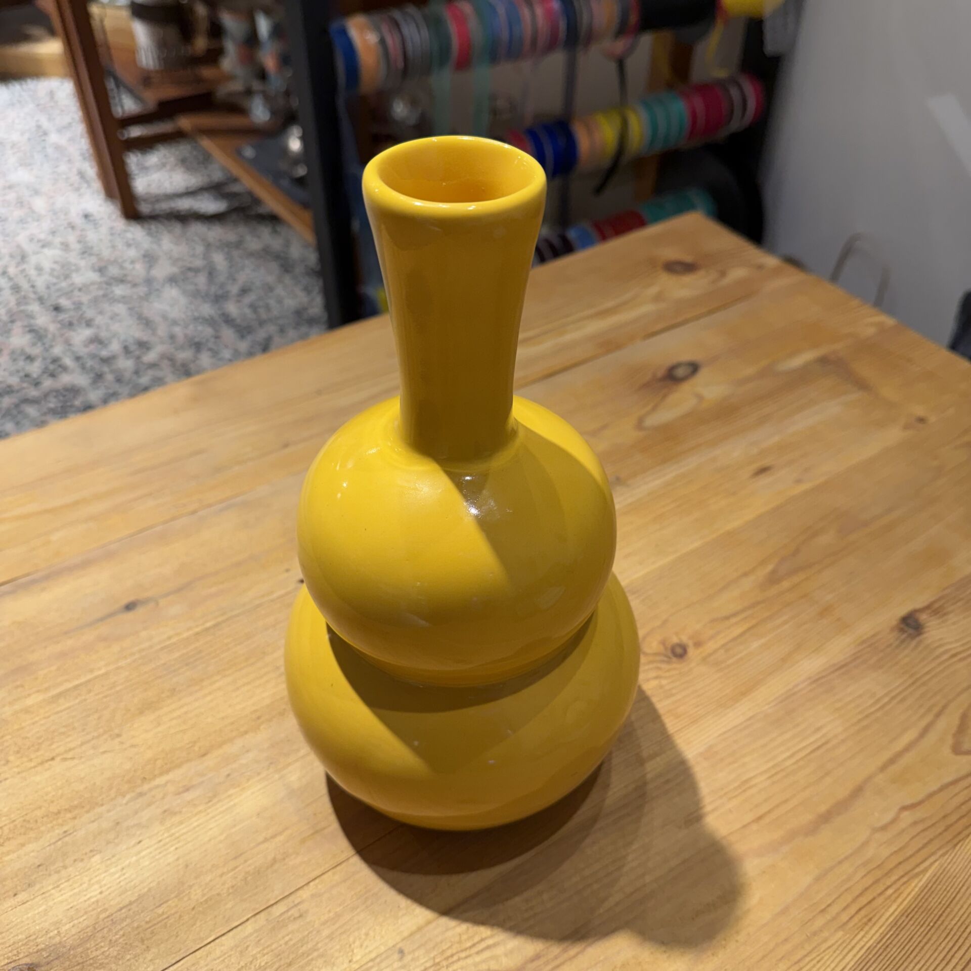 25 cm boyu olan seramik sarı vazo.