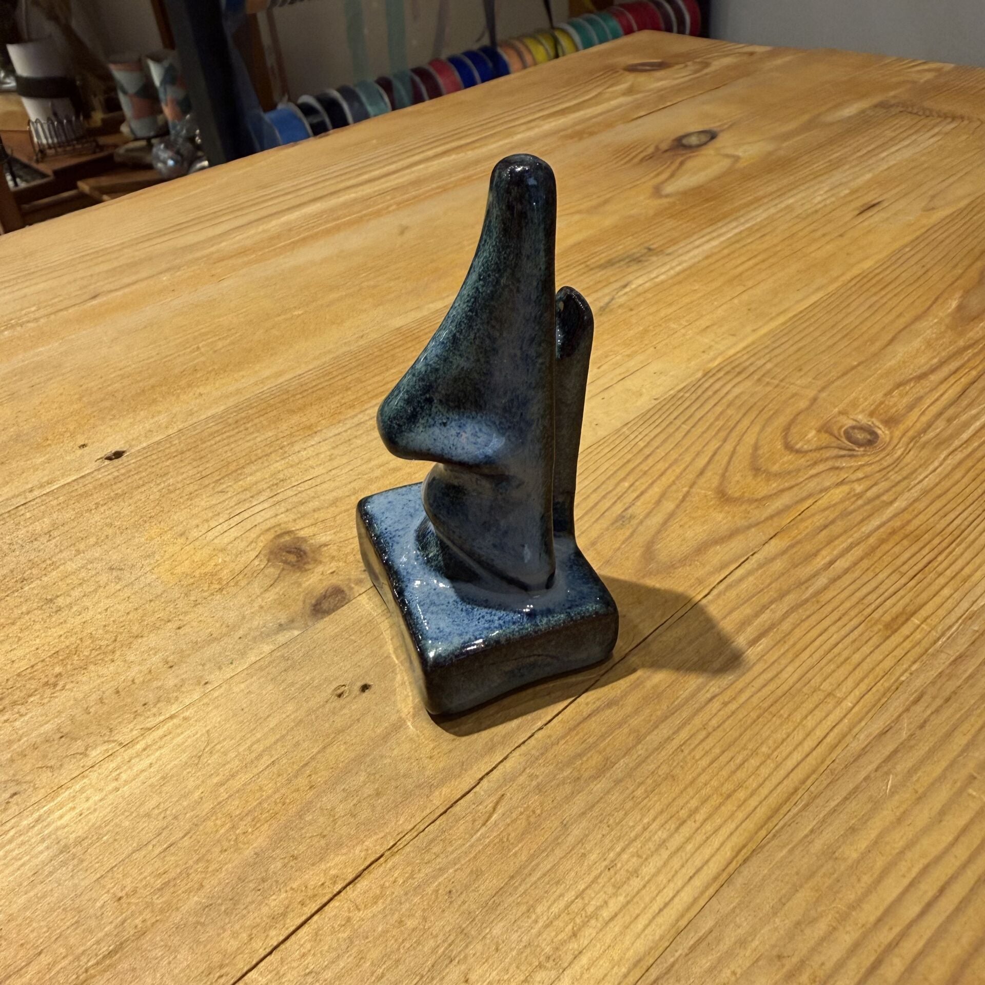 9 cm boyu, 5 cm eni olan mavi renk dekoratif işlevsel seramik obje.