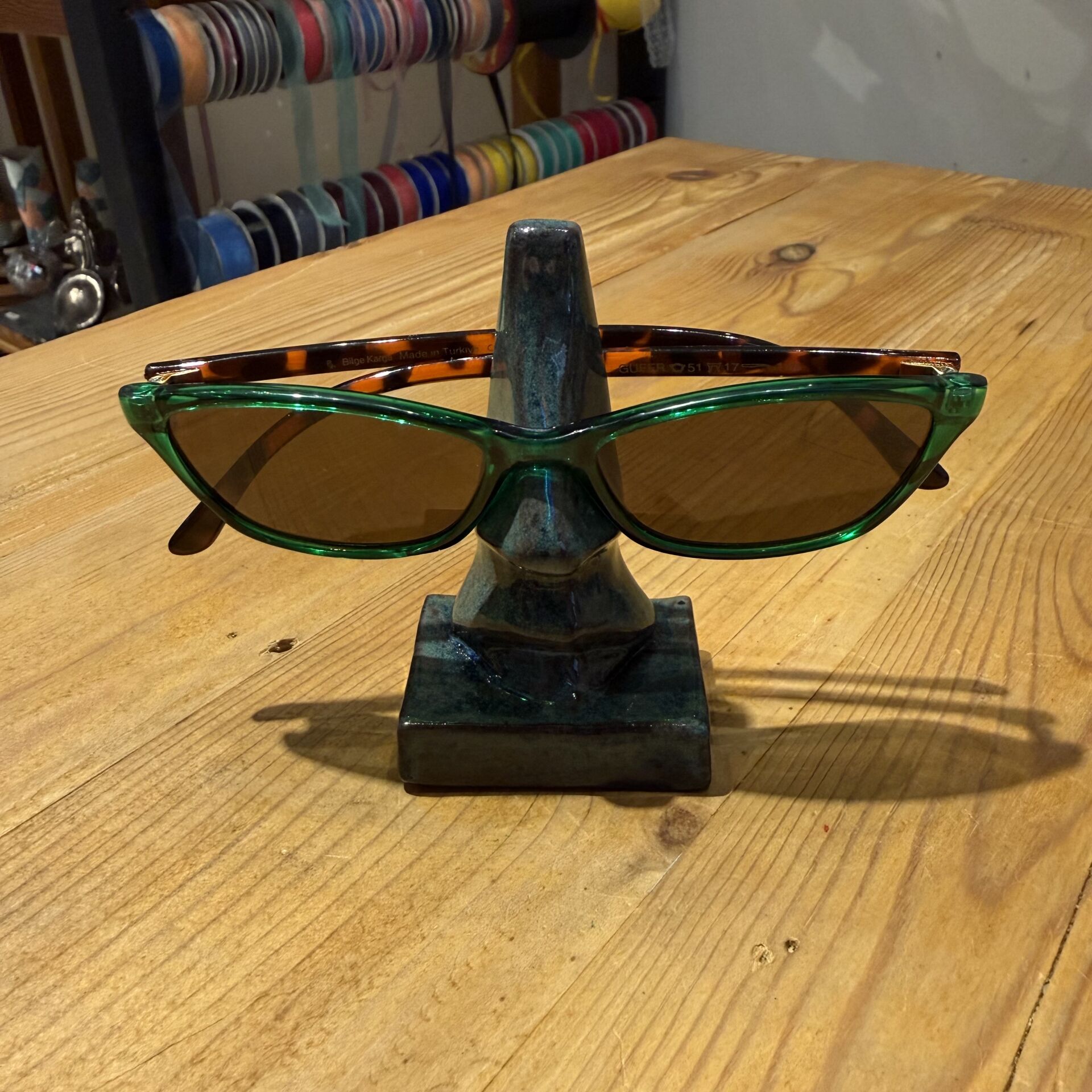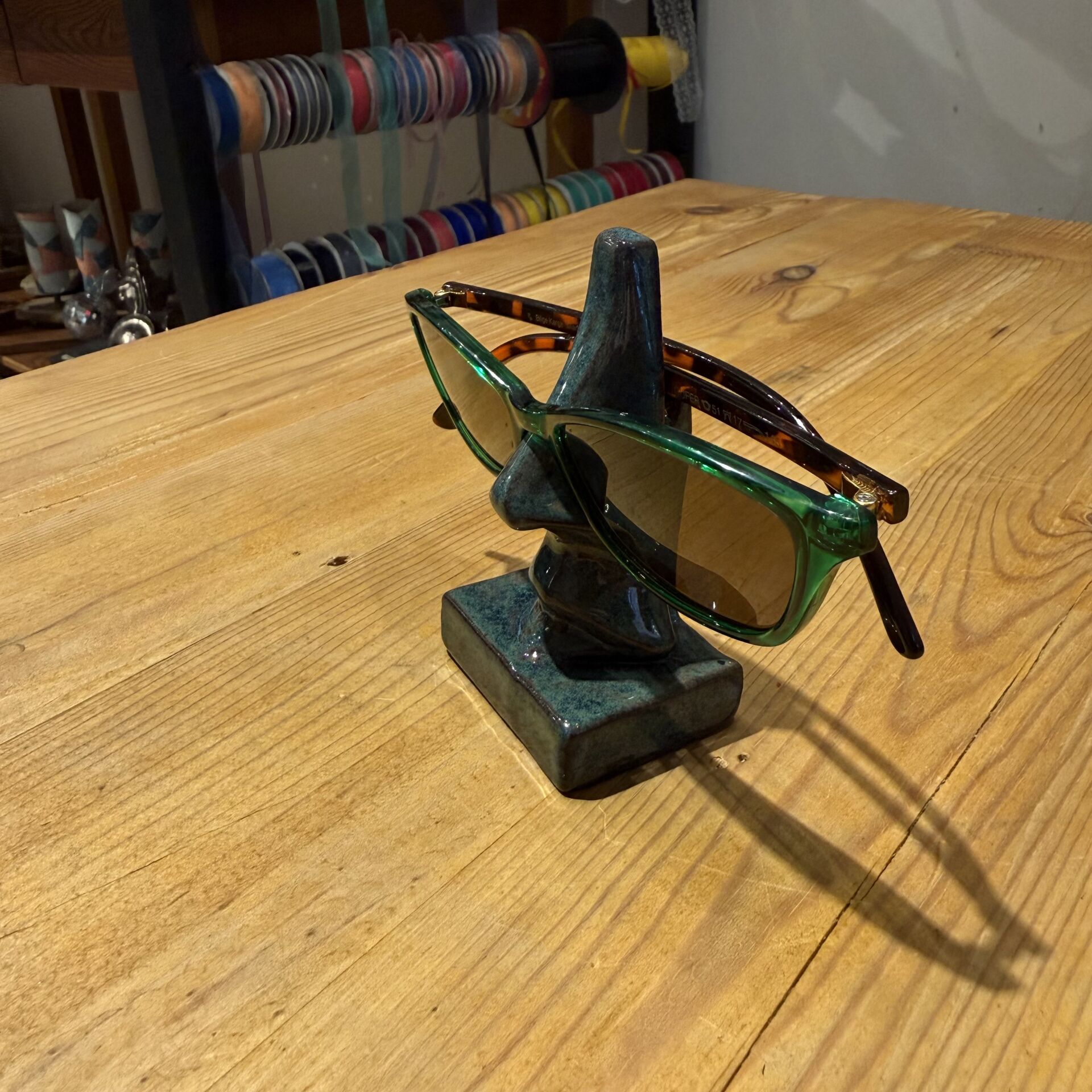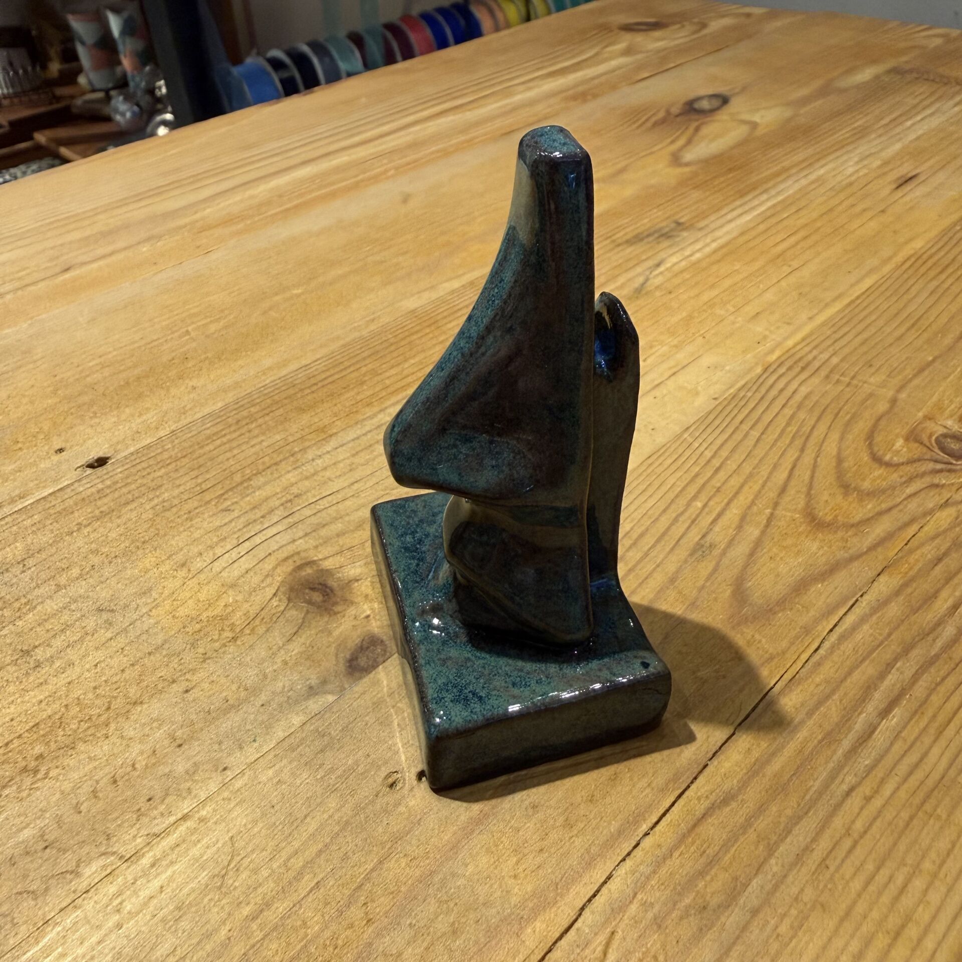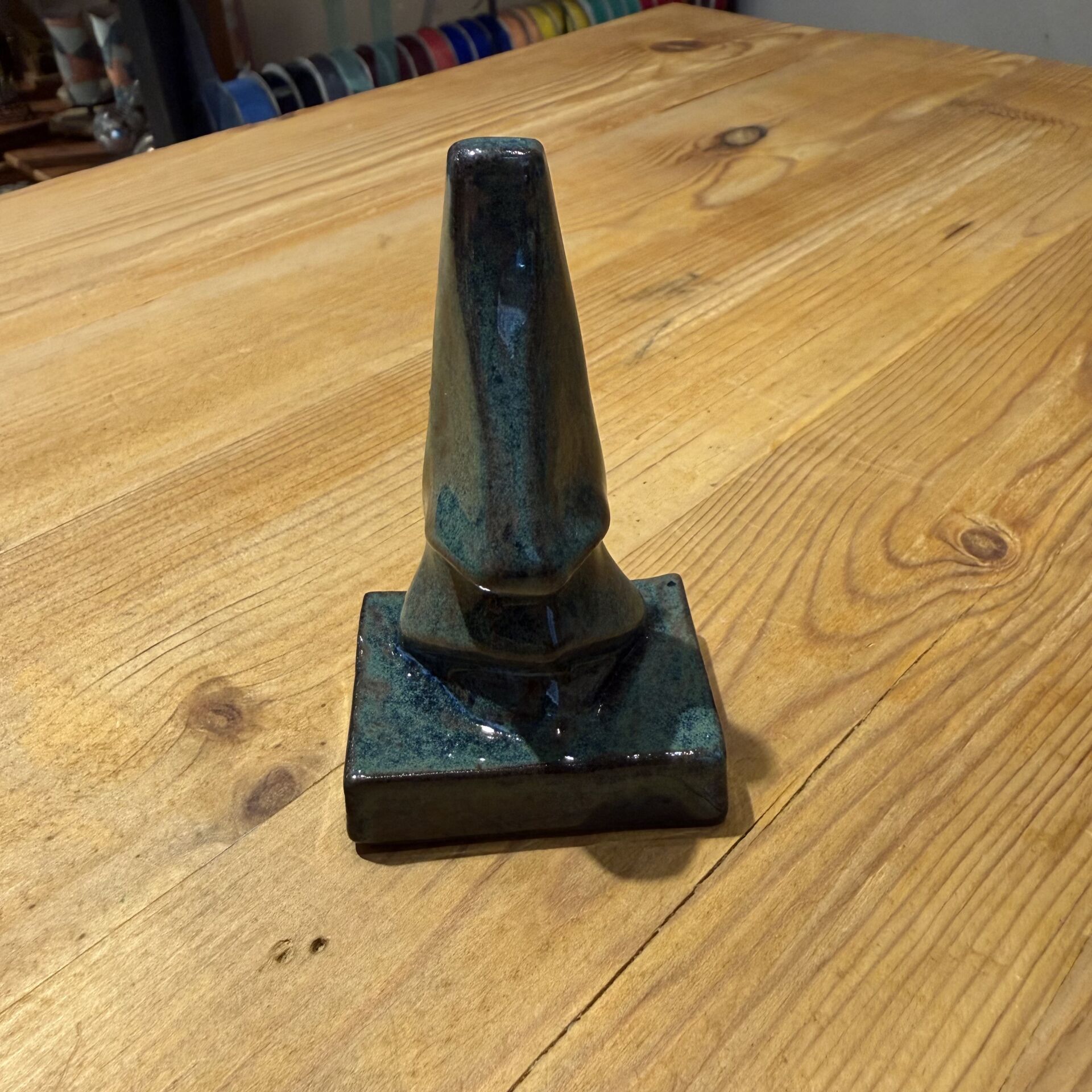 9 cm boyu, 5 cm eni olan yeşil renk dekoratif işlevsel seramik obje.