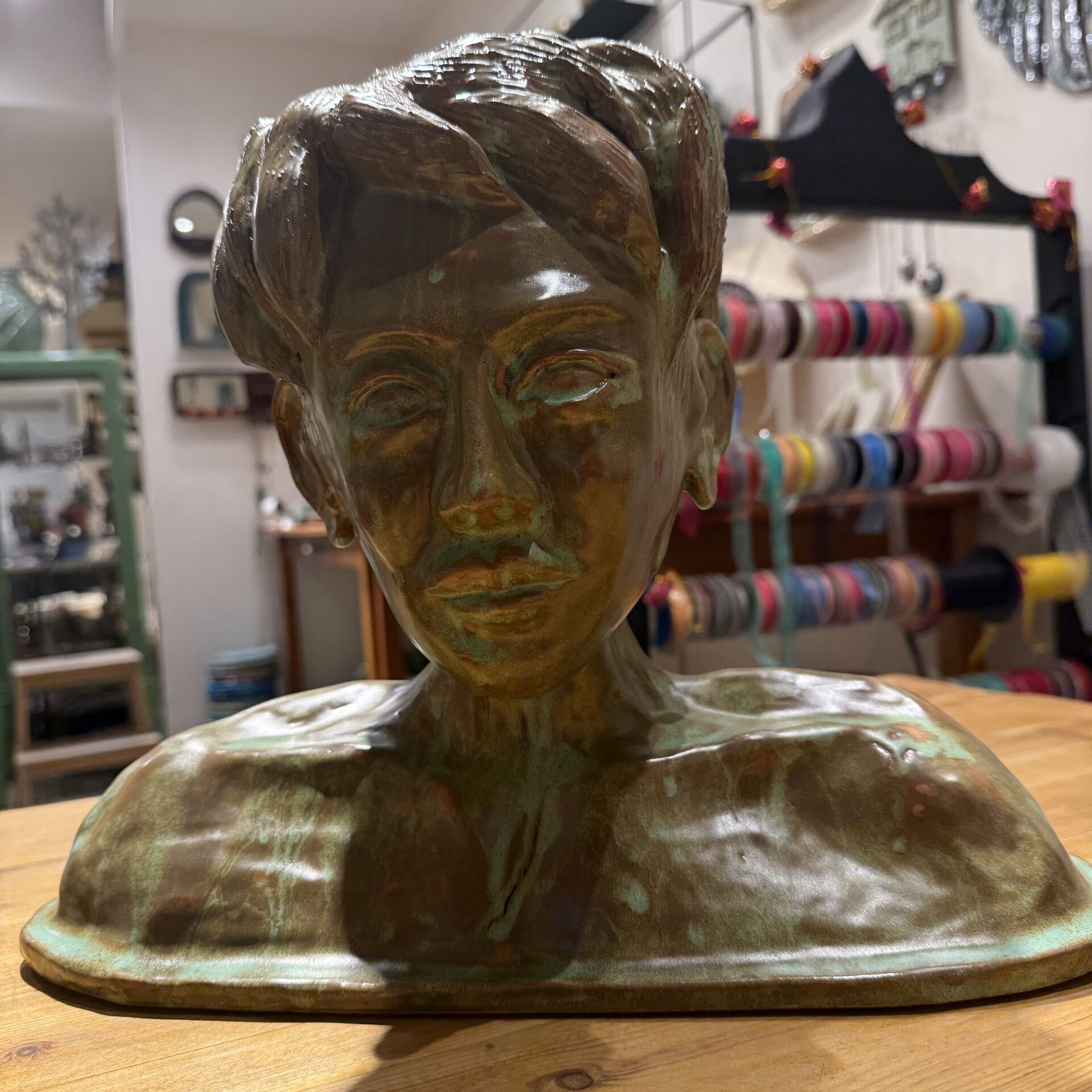 37 cm taban genişliğine sahip 29 cm yüksekliğinde seramik erkek büst.