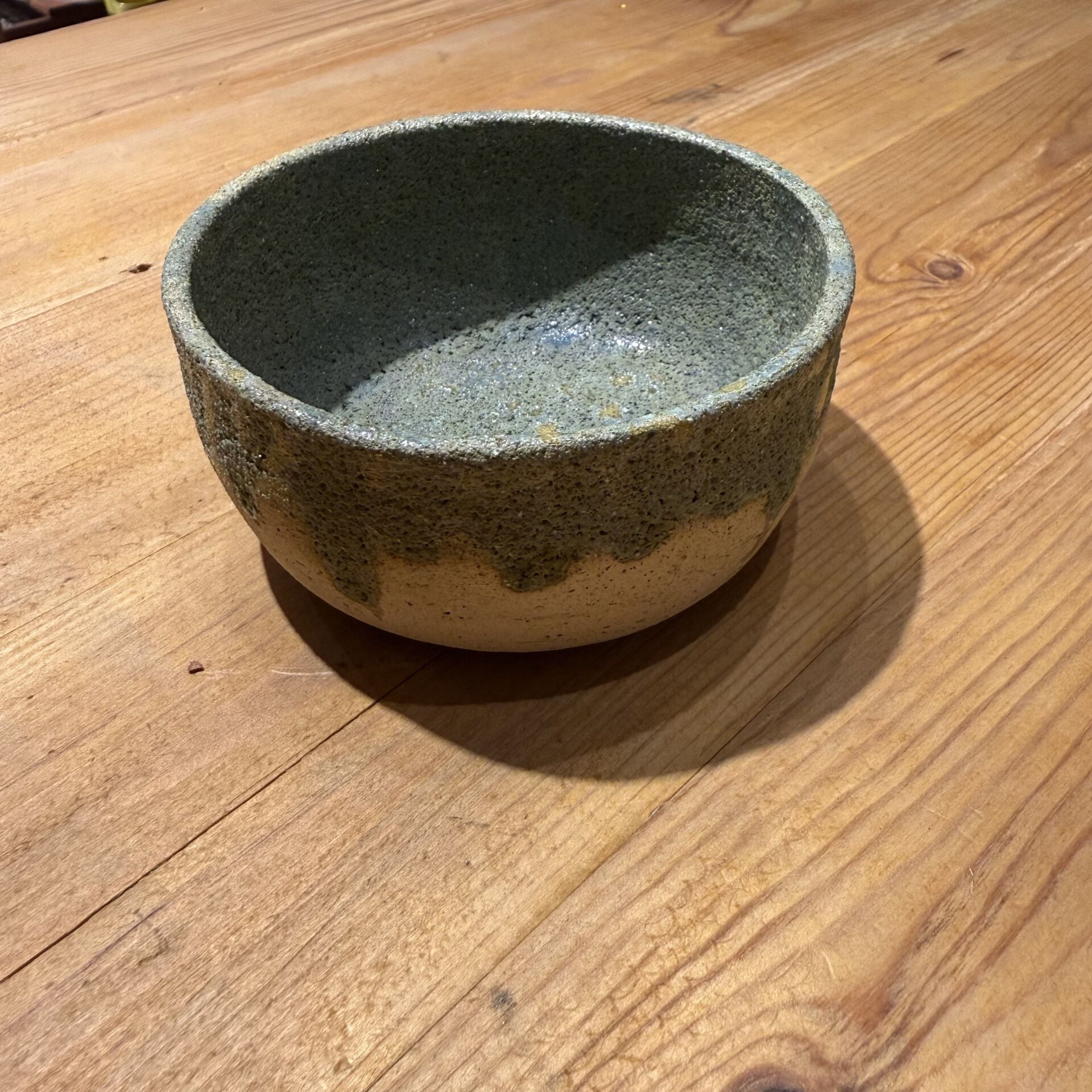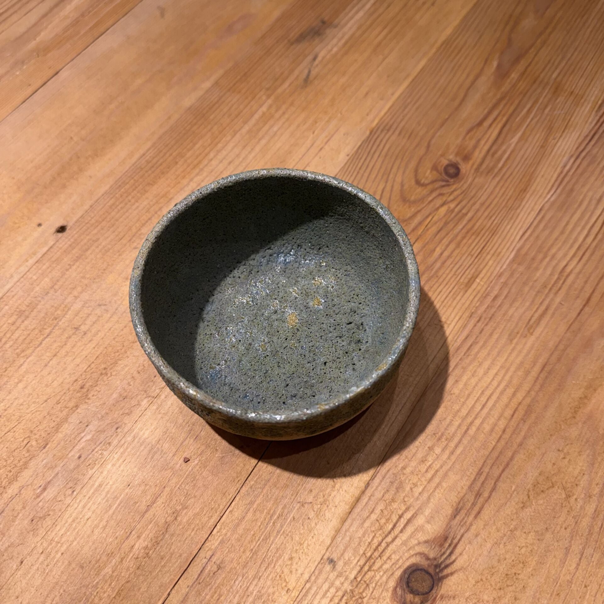 10 cm çapında 4 cm yüksekliğinde taş yüzeyli seramik kase.