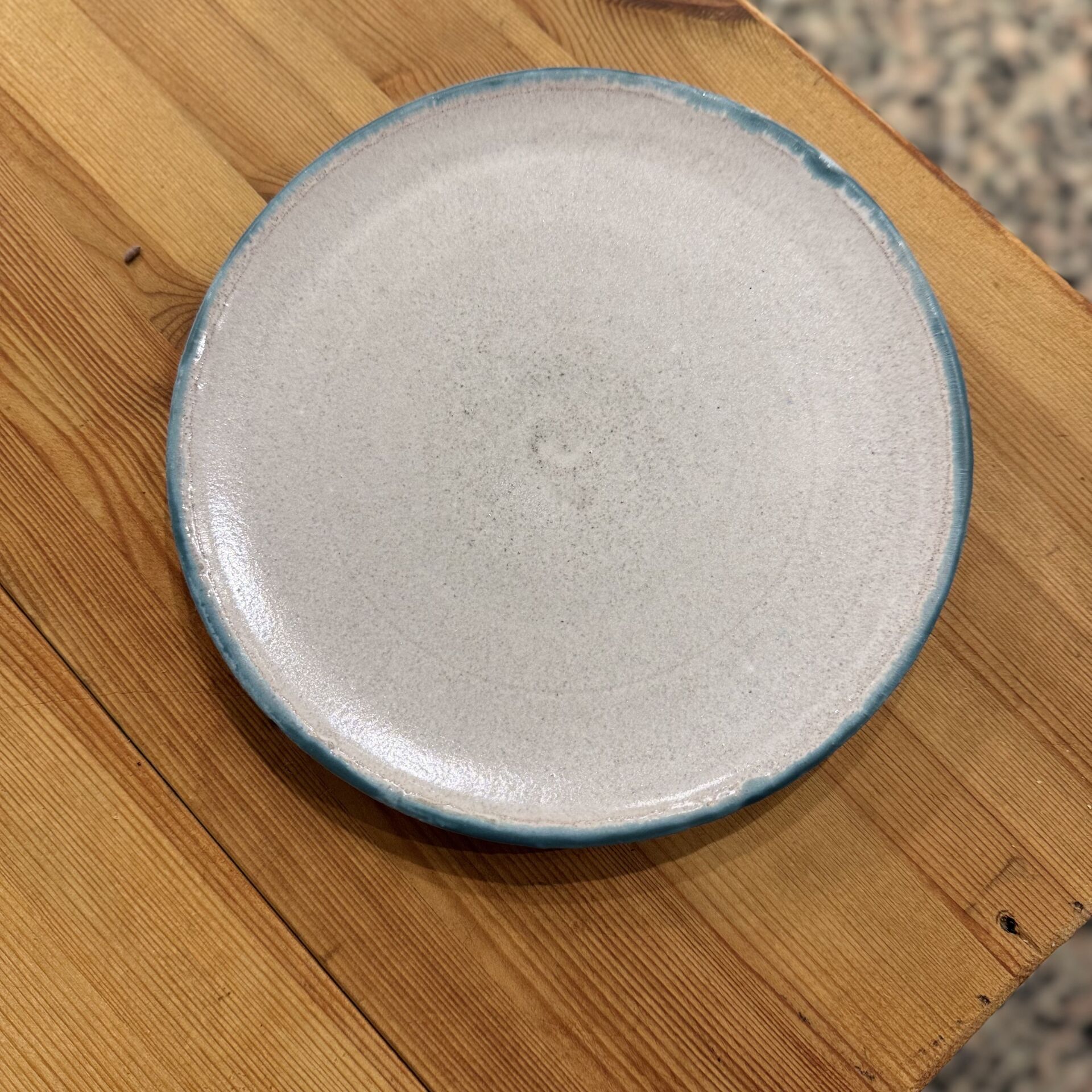 19 cm çapında kenarları yeşil detaylı seramik tabak.