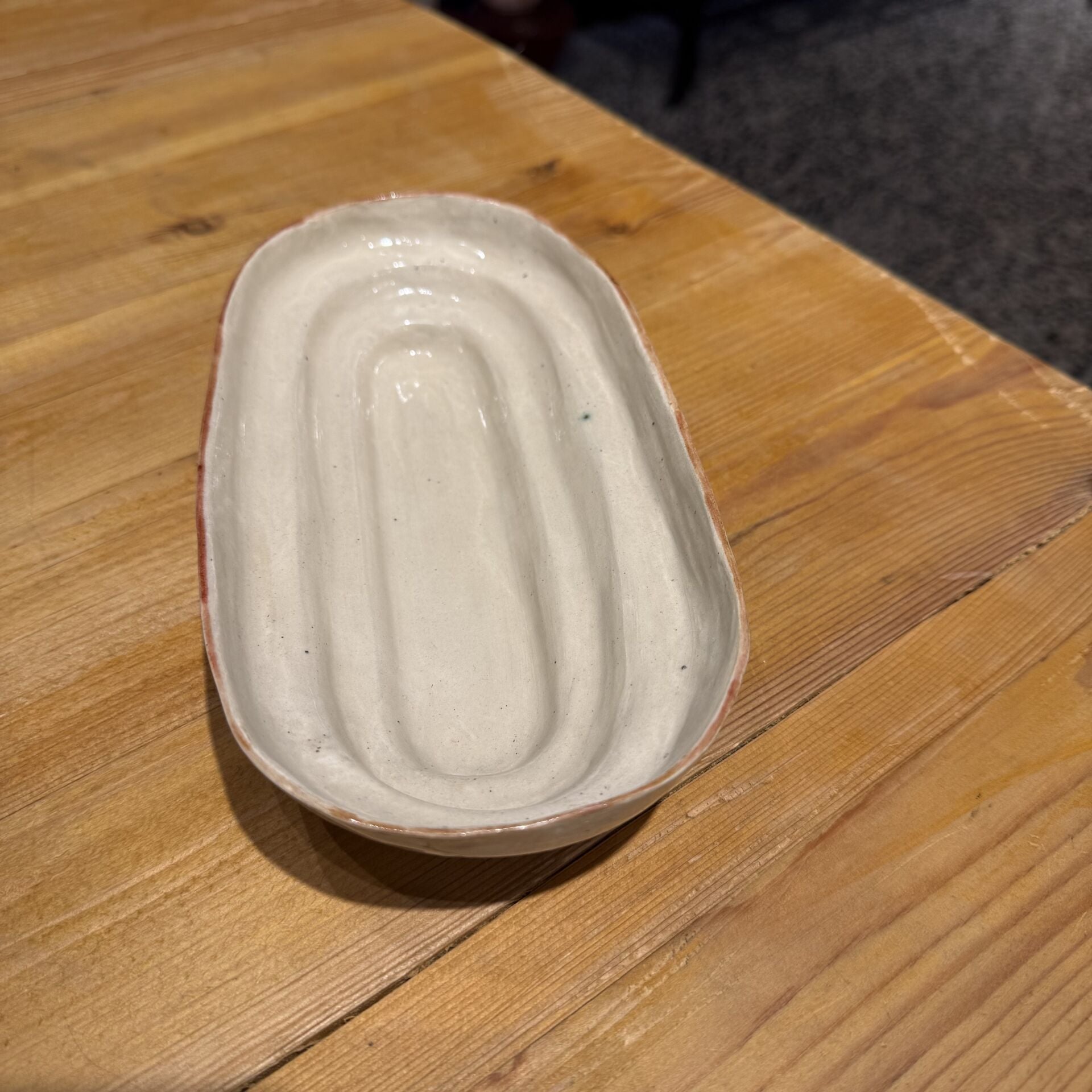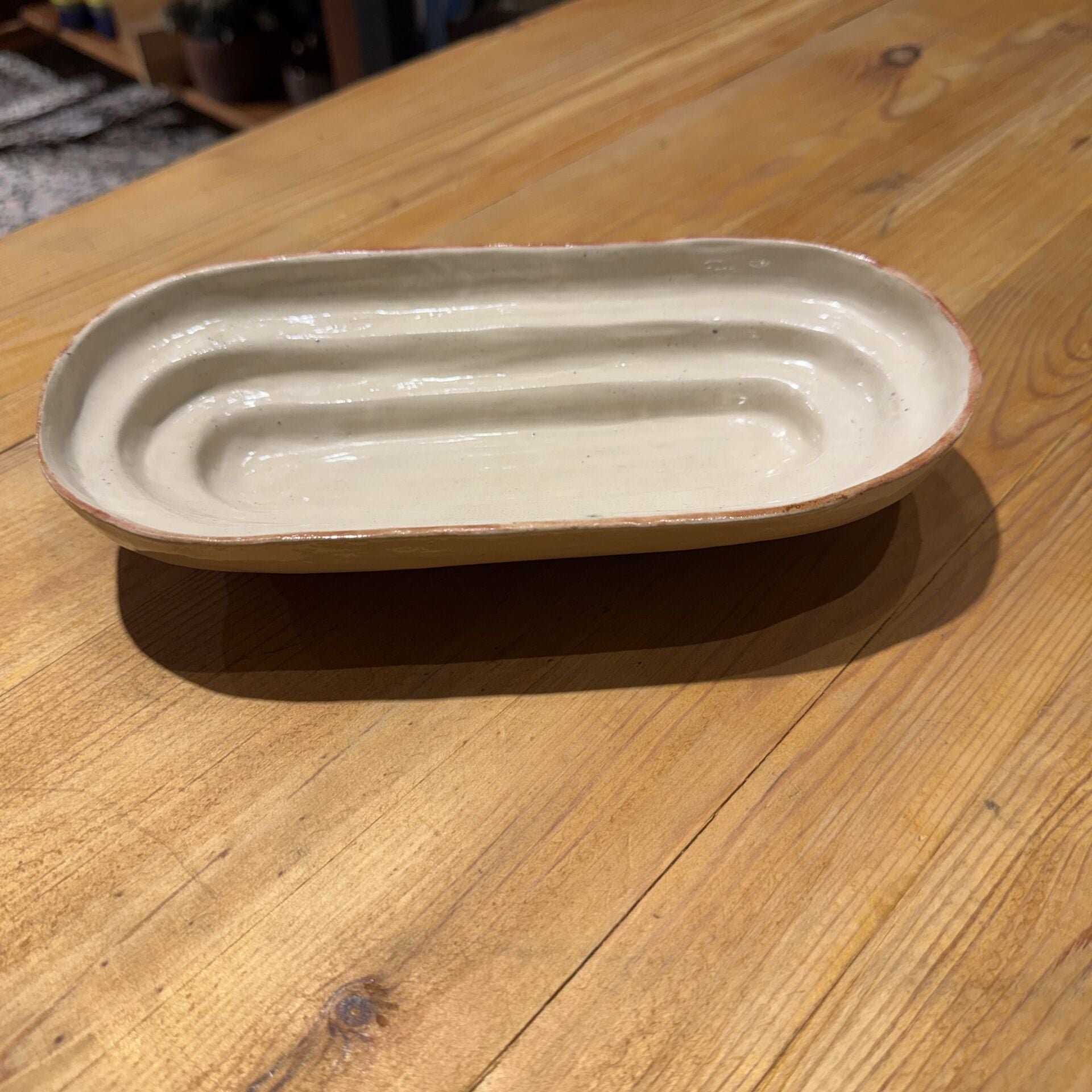 4 cm yüksekliğinde 22x11 cm ebatlarında, seramik tabak.