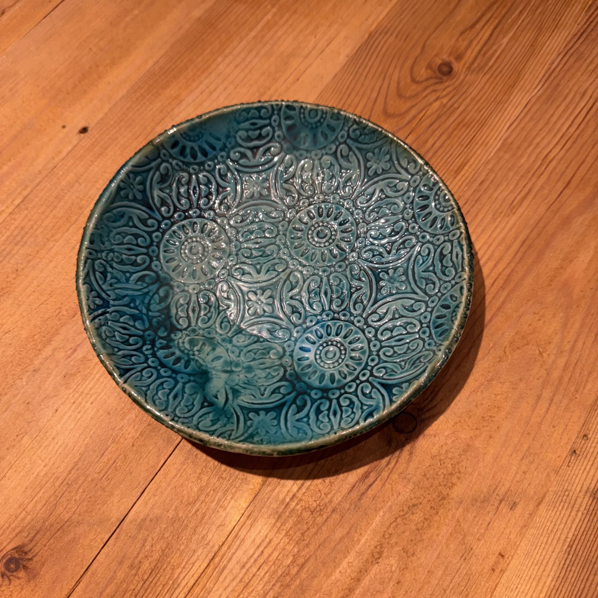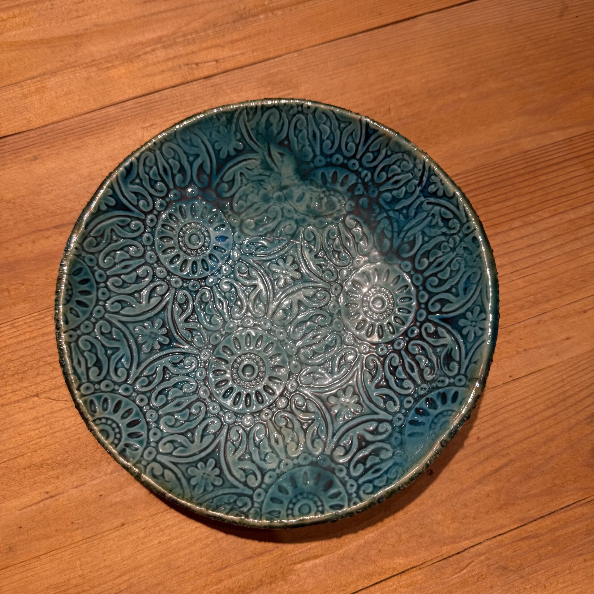 16*16 çapında turkuaz renkli çok amaçlı seramik tabak.