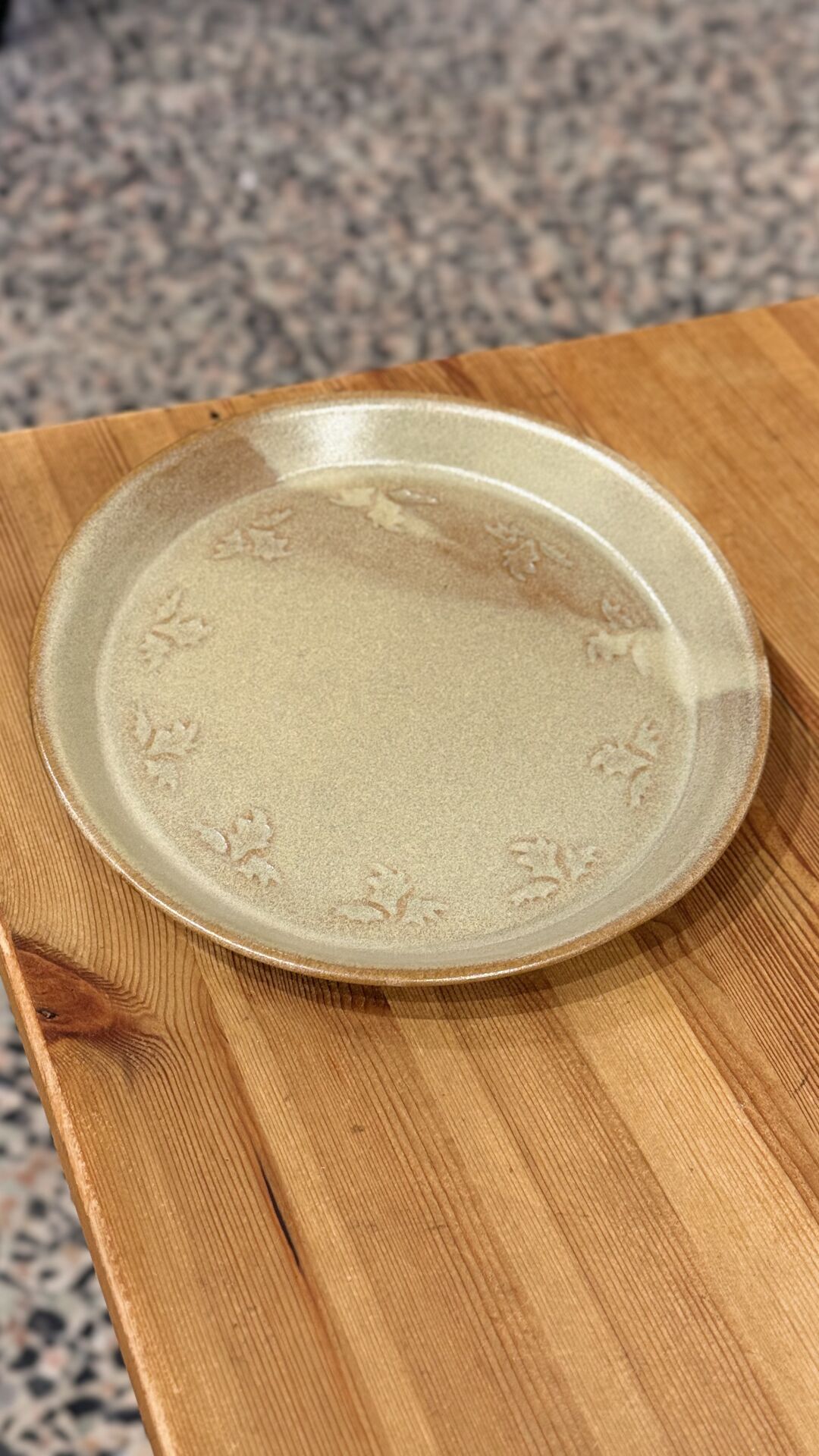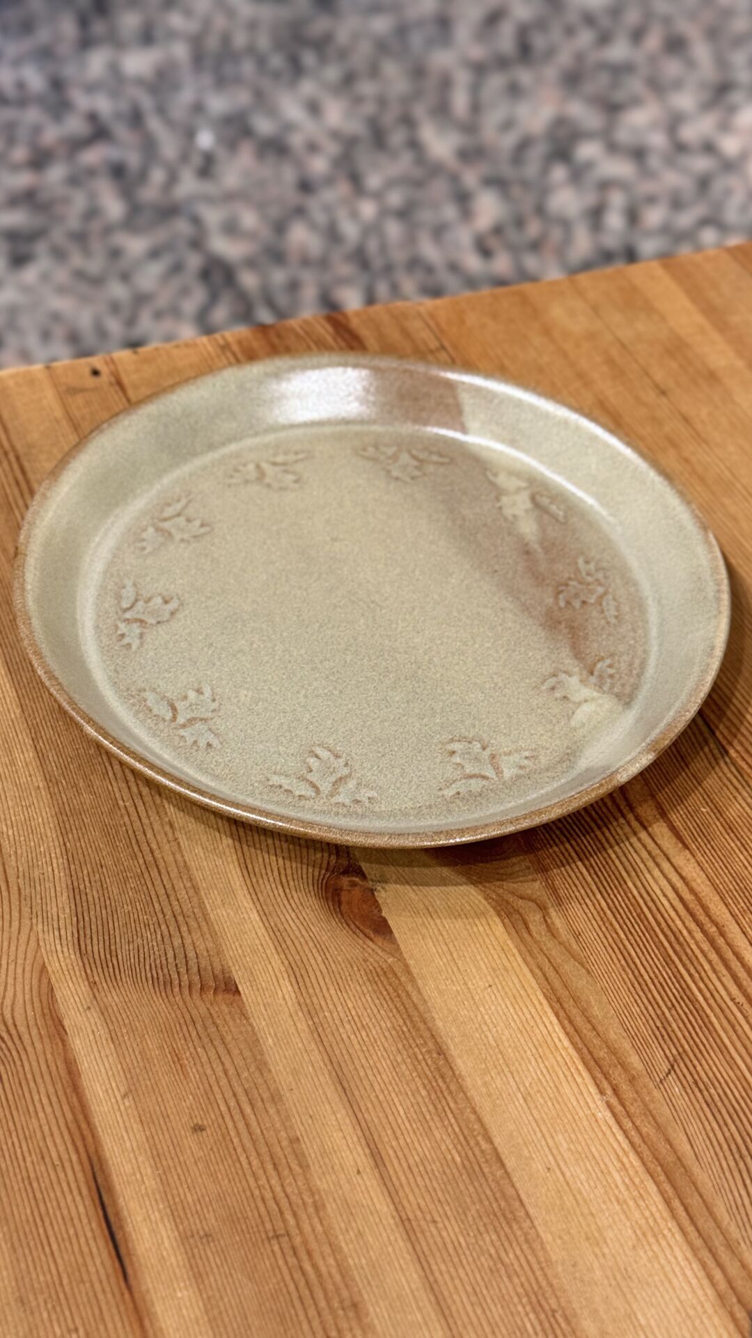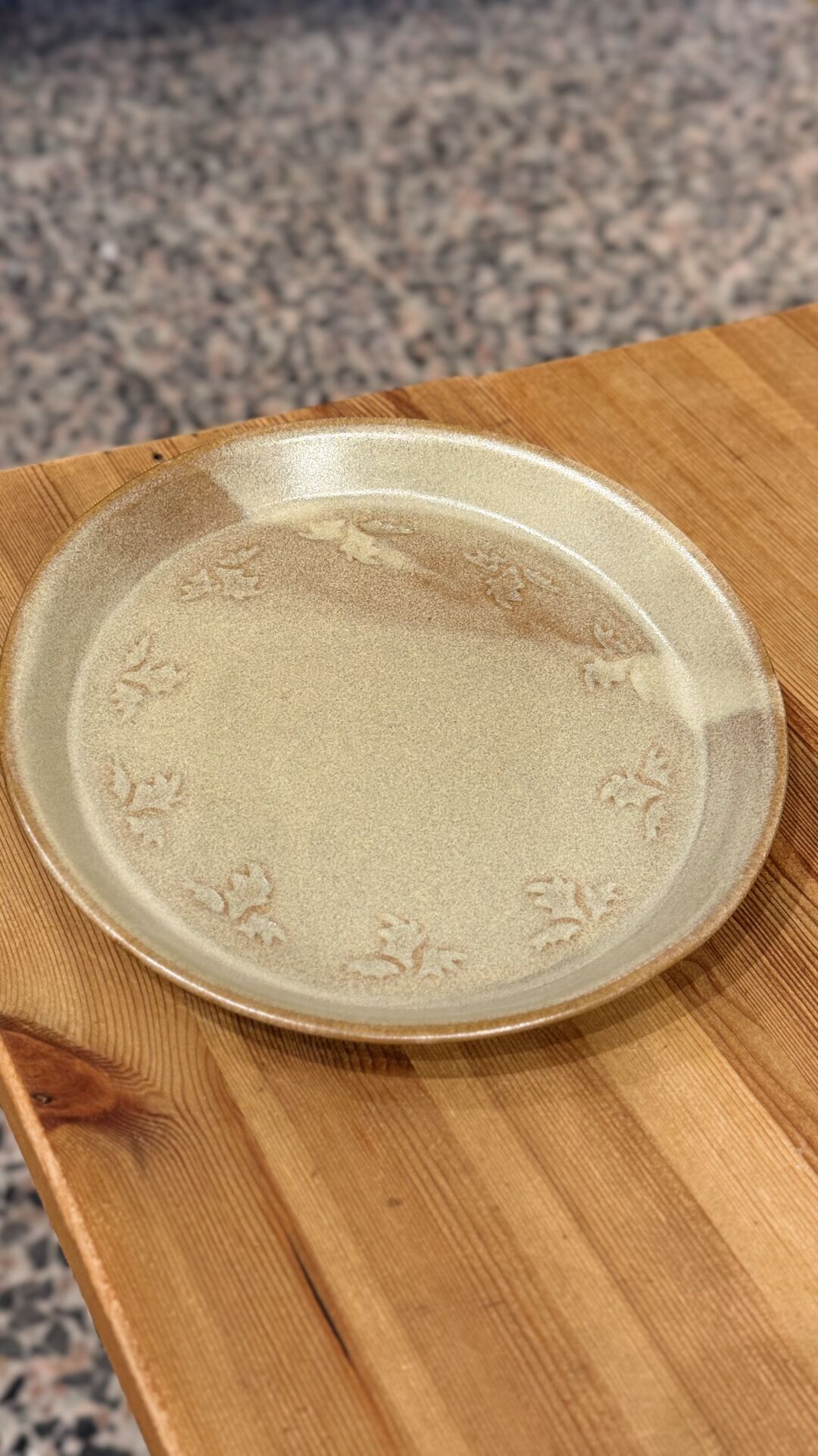 22 cm çapında kenarları desenli seramik tabak.