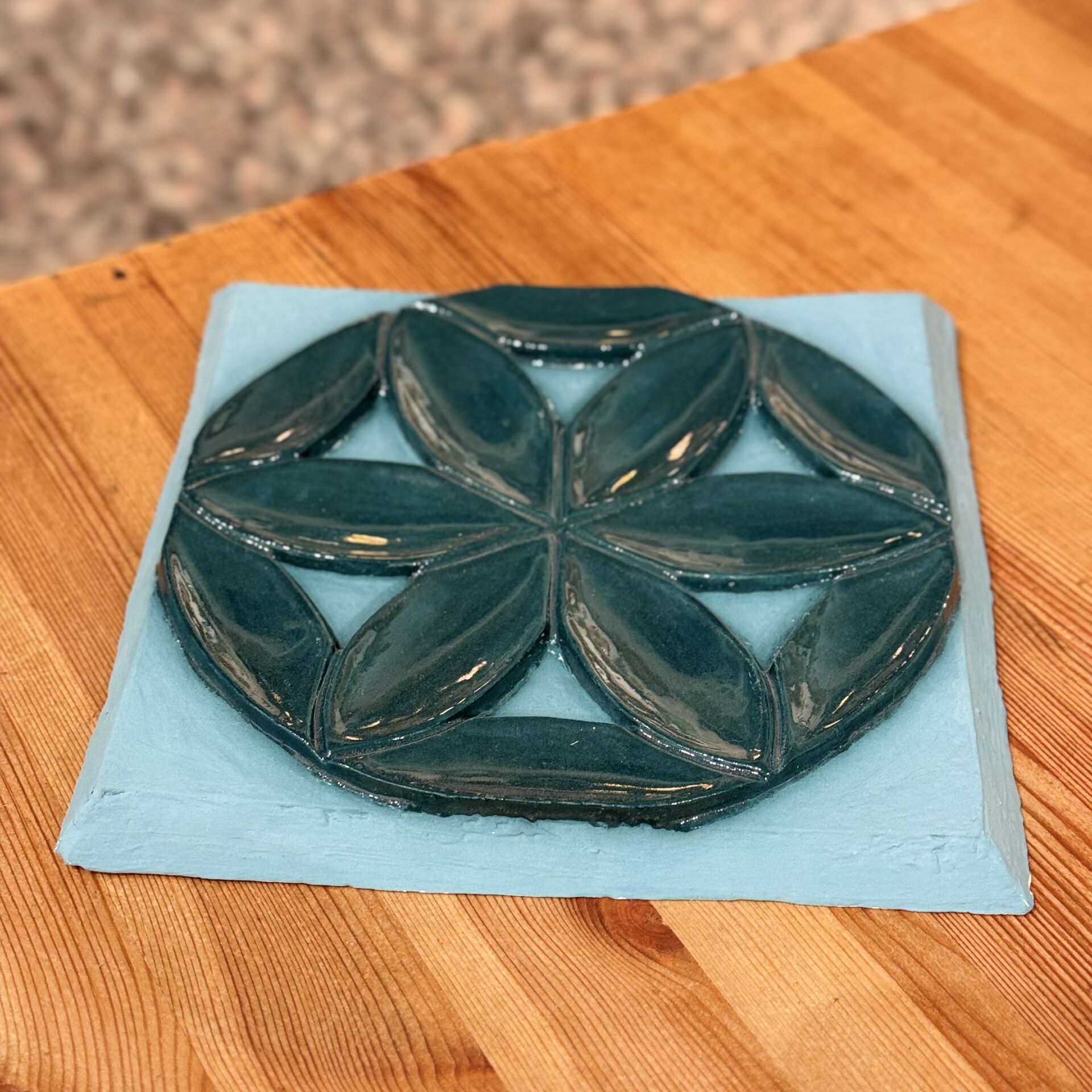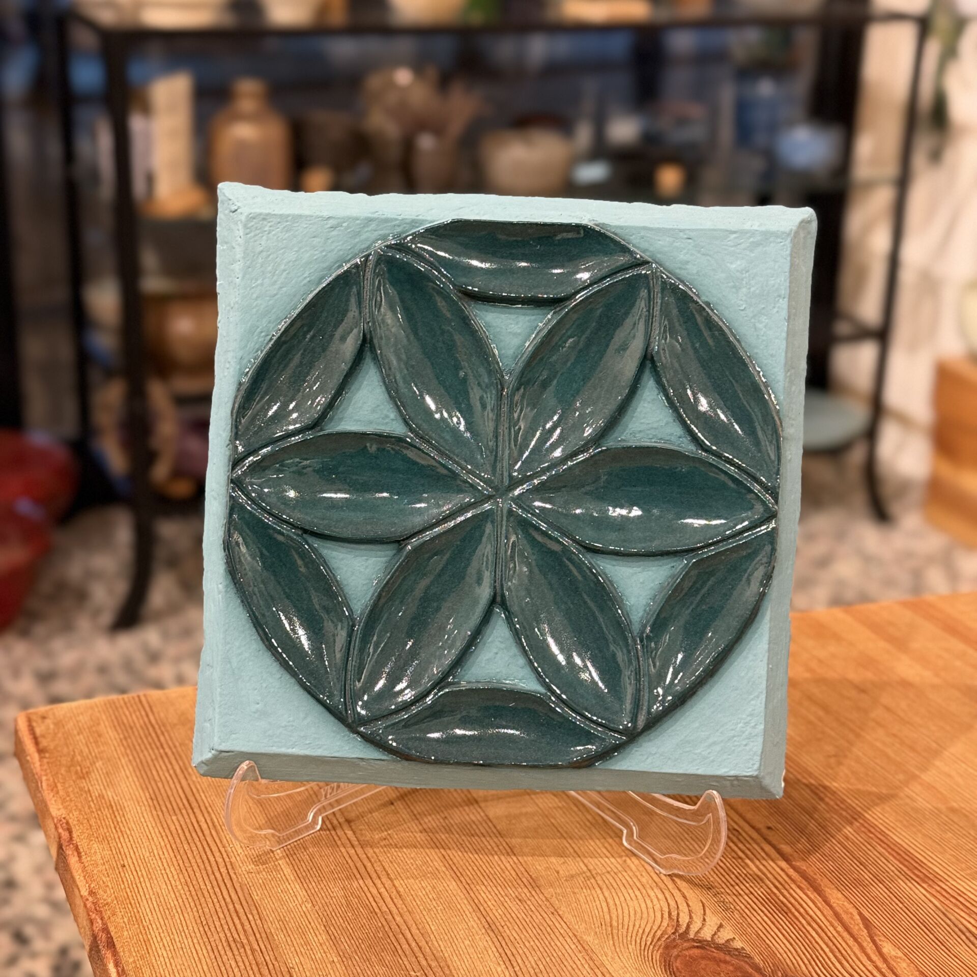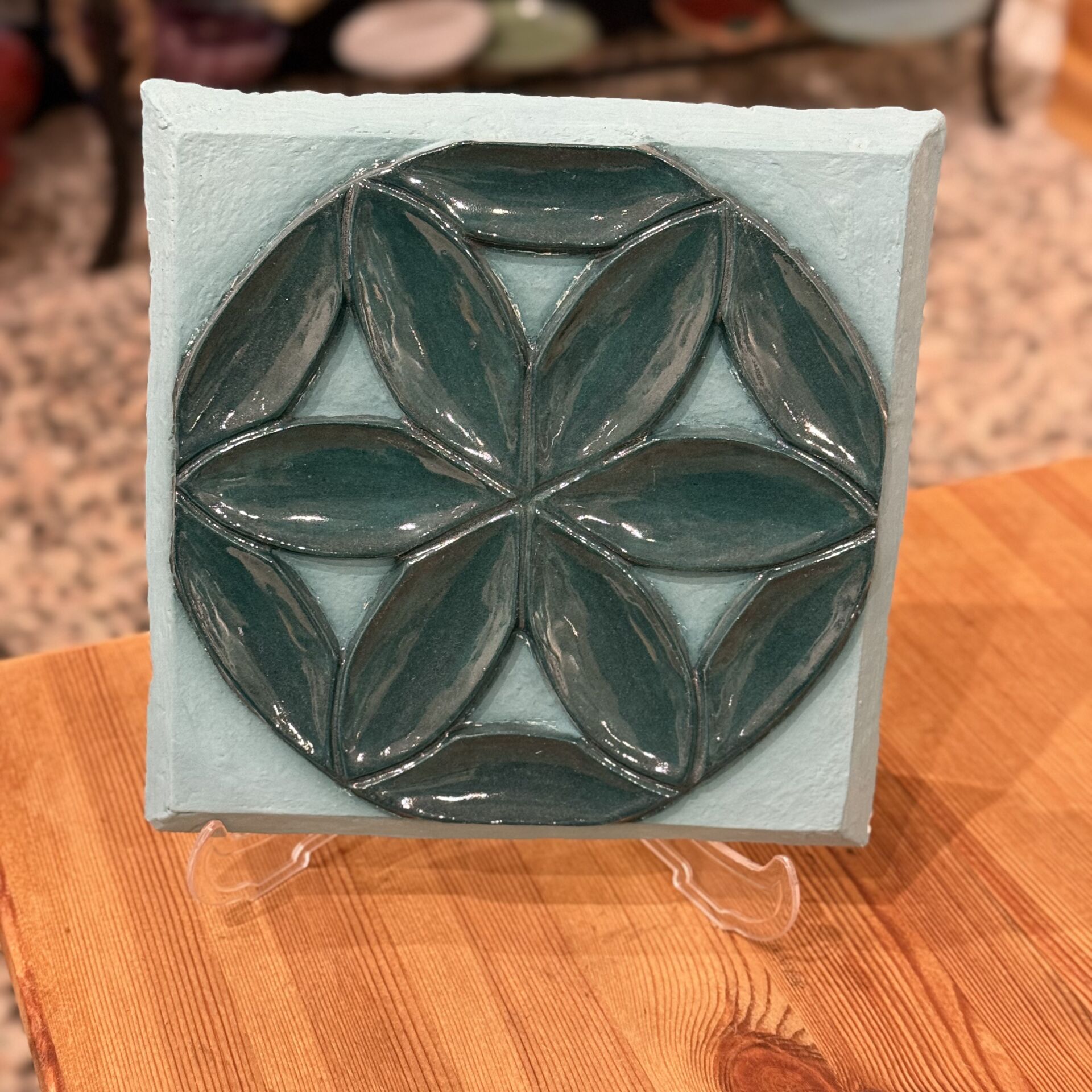 18x18 ebatlarında, çiçek motifli dekoratif seramik pano