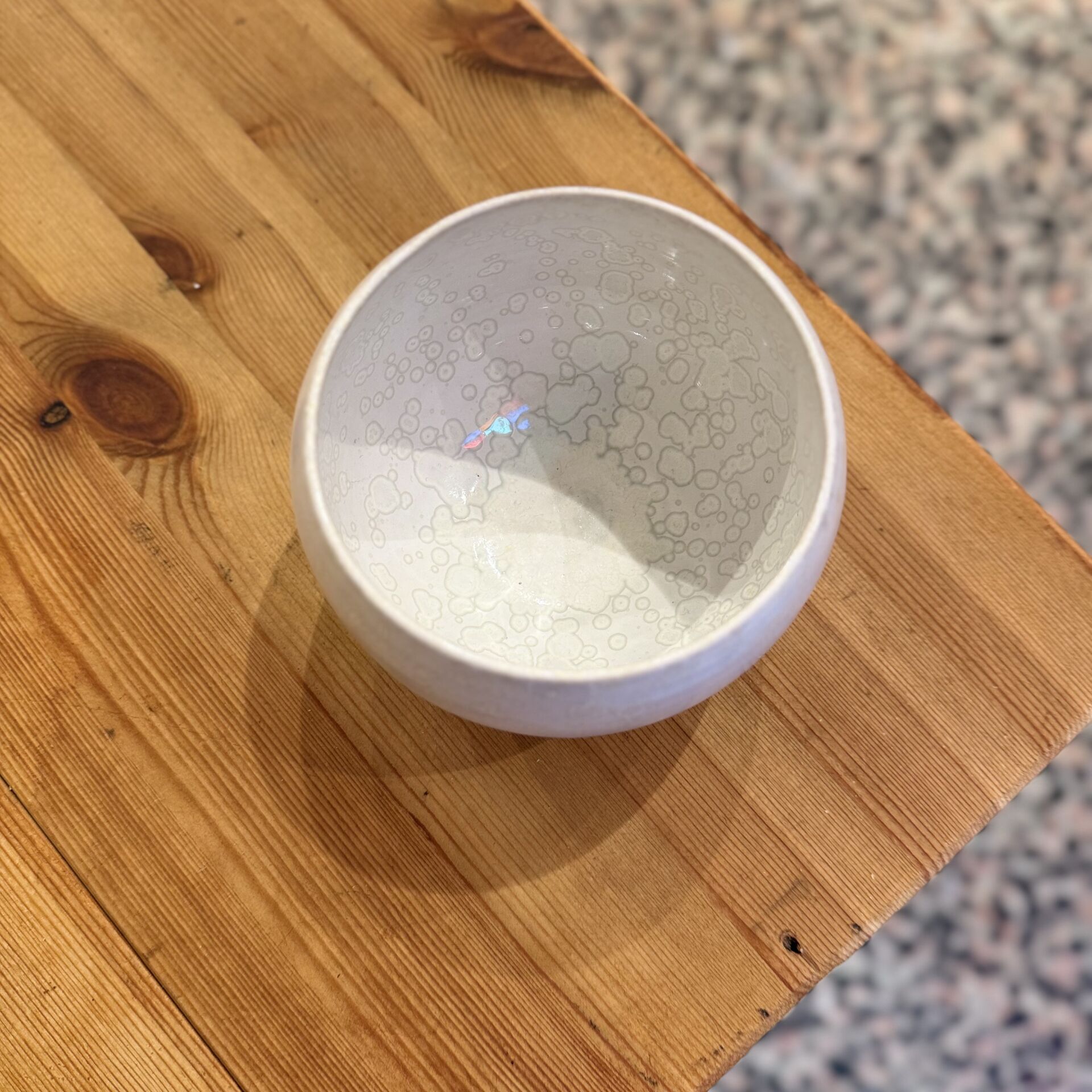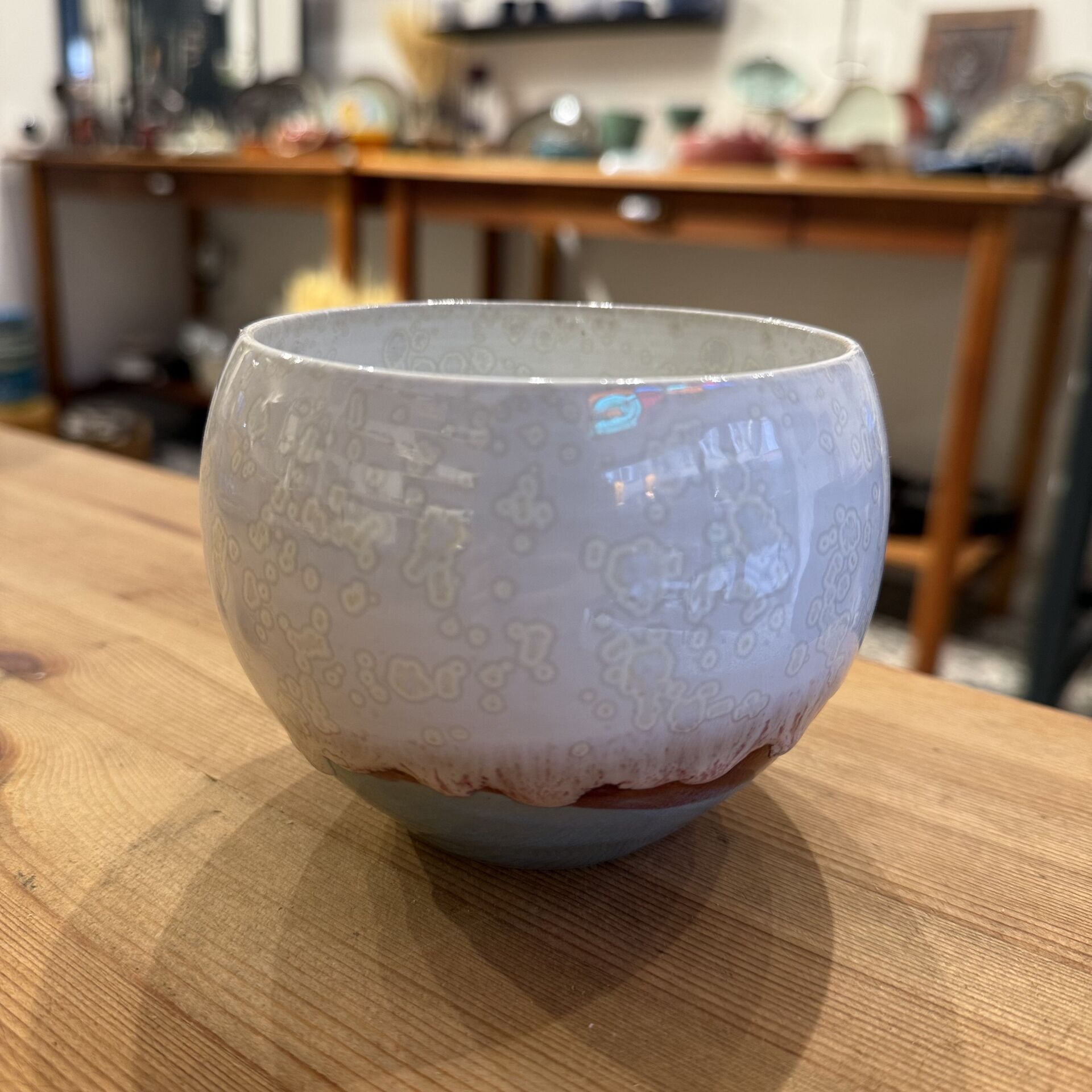 10 cm çapında 9,5 cm yüksekliğinde dekoratif, seramik vazo.